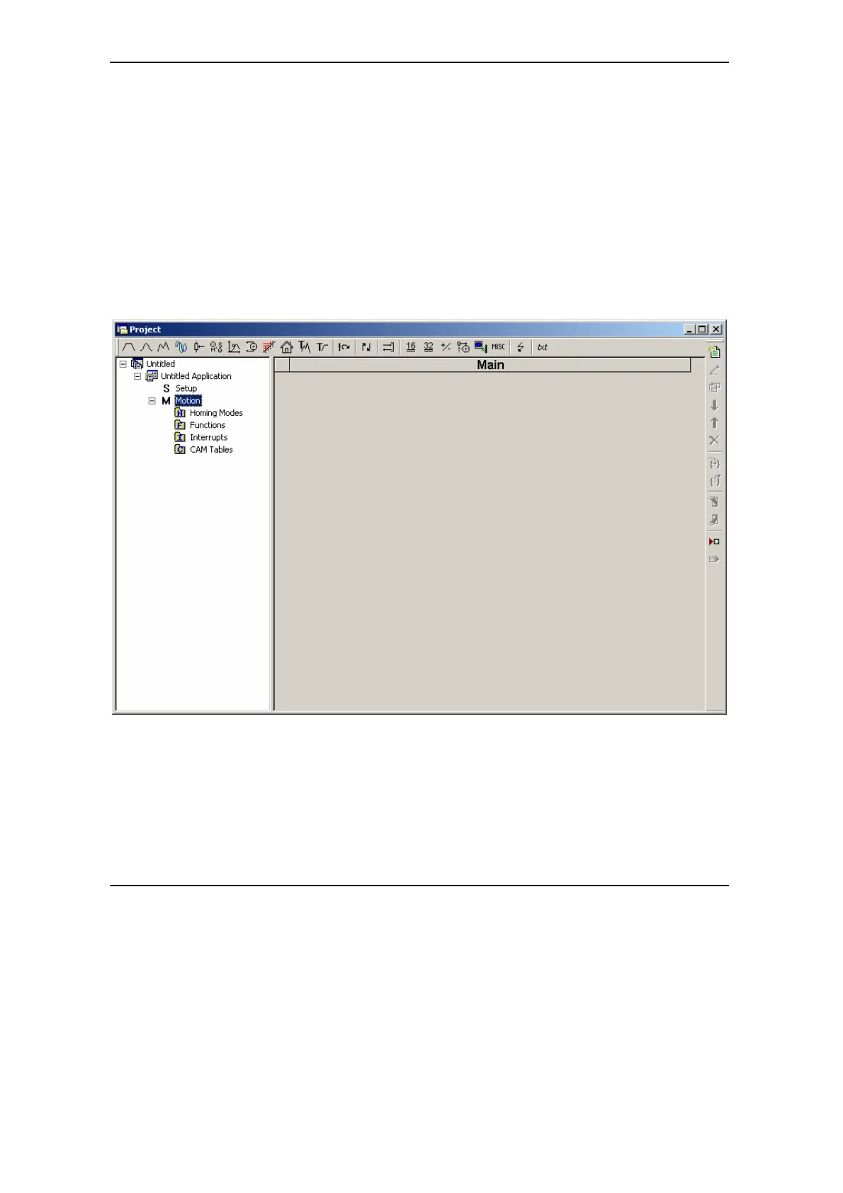 the project window left side, select “M Motion”, for motion programming. This automatically
