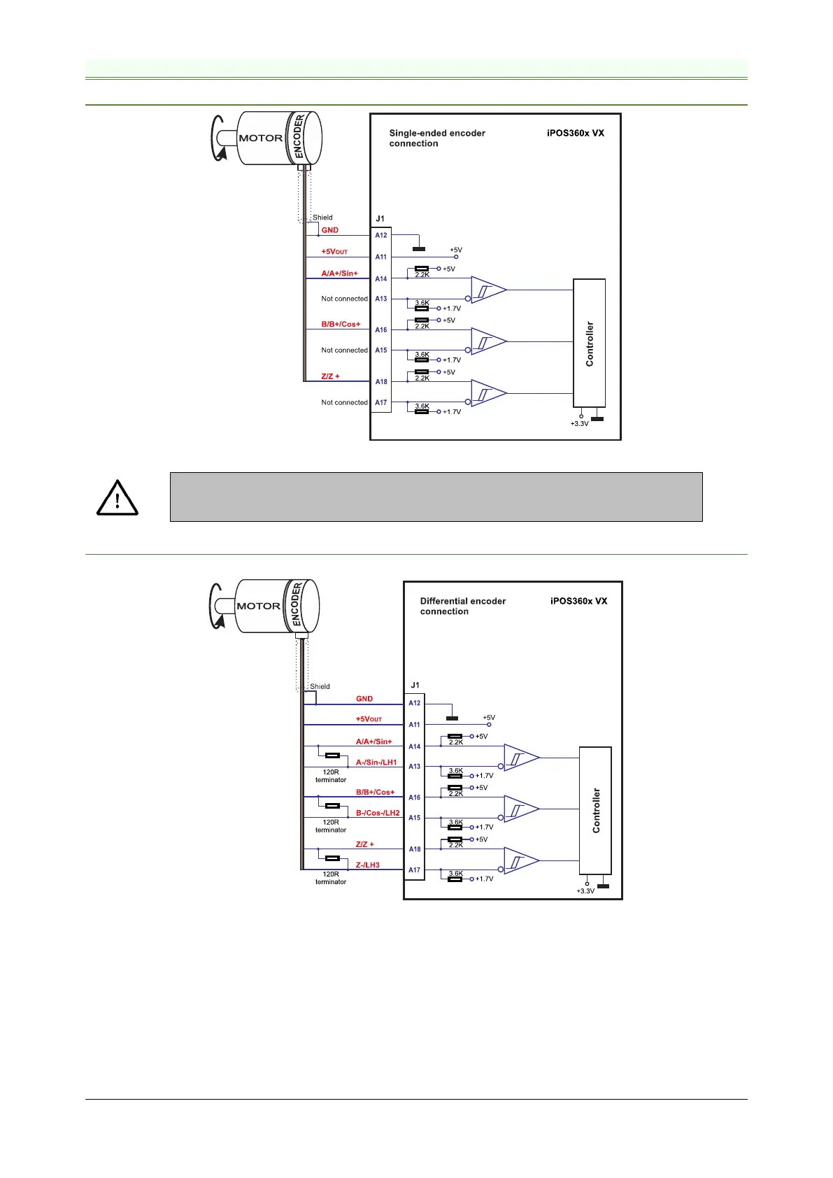 1. For the encoder differential connection, external 120Ω (0.25W) terminators are required for long encoder cables,