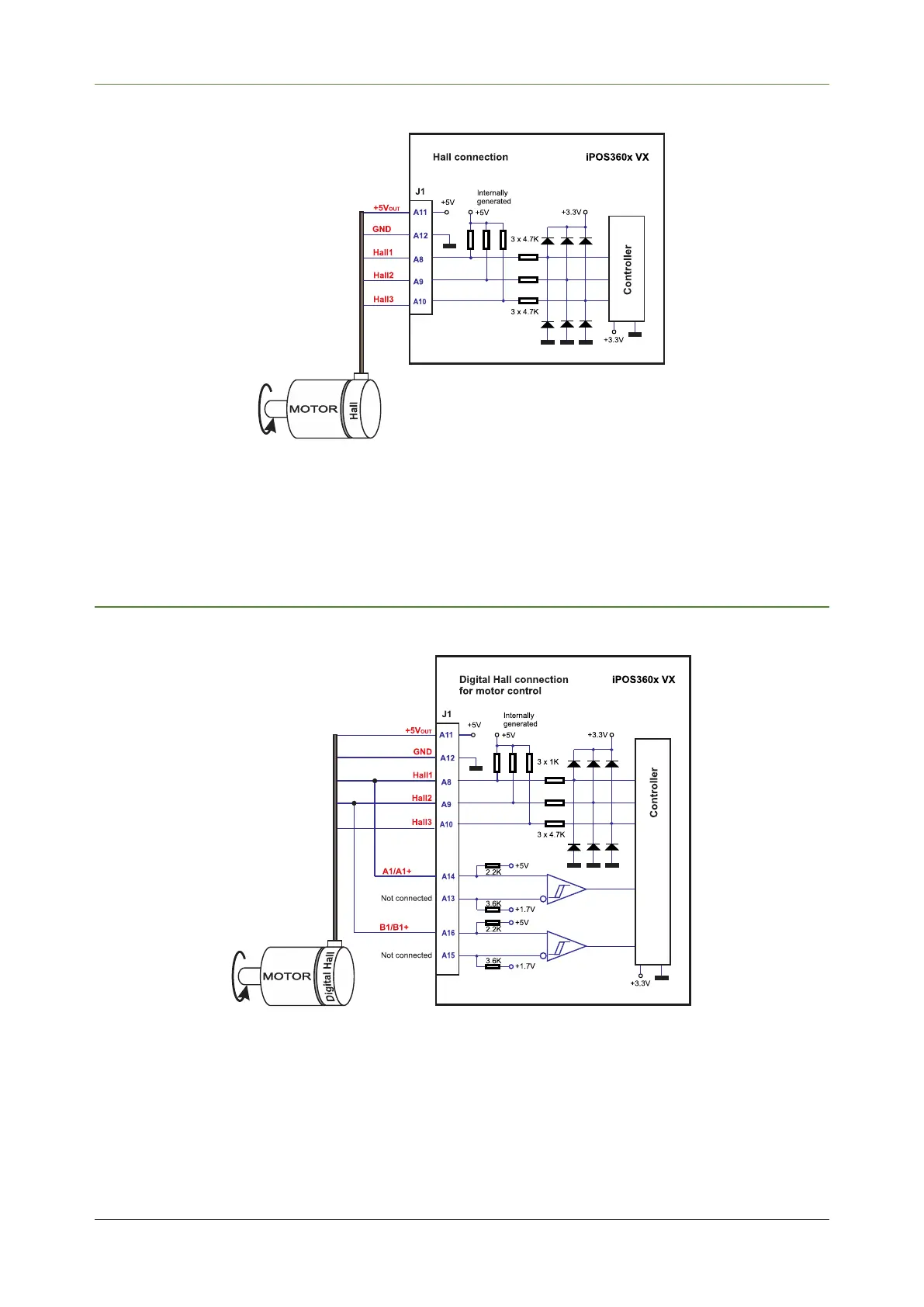1. This connection is required when using only Digital hall signals as the main feedback device for motor control.