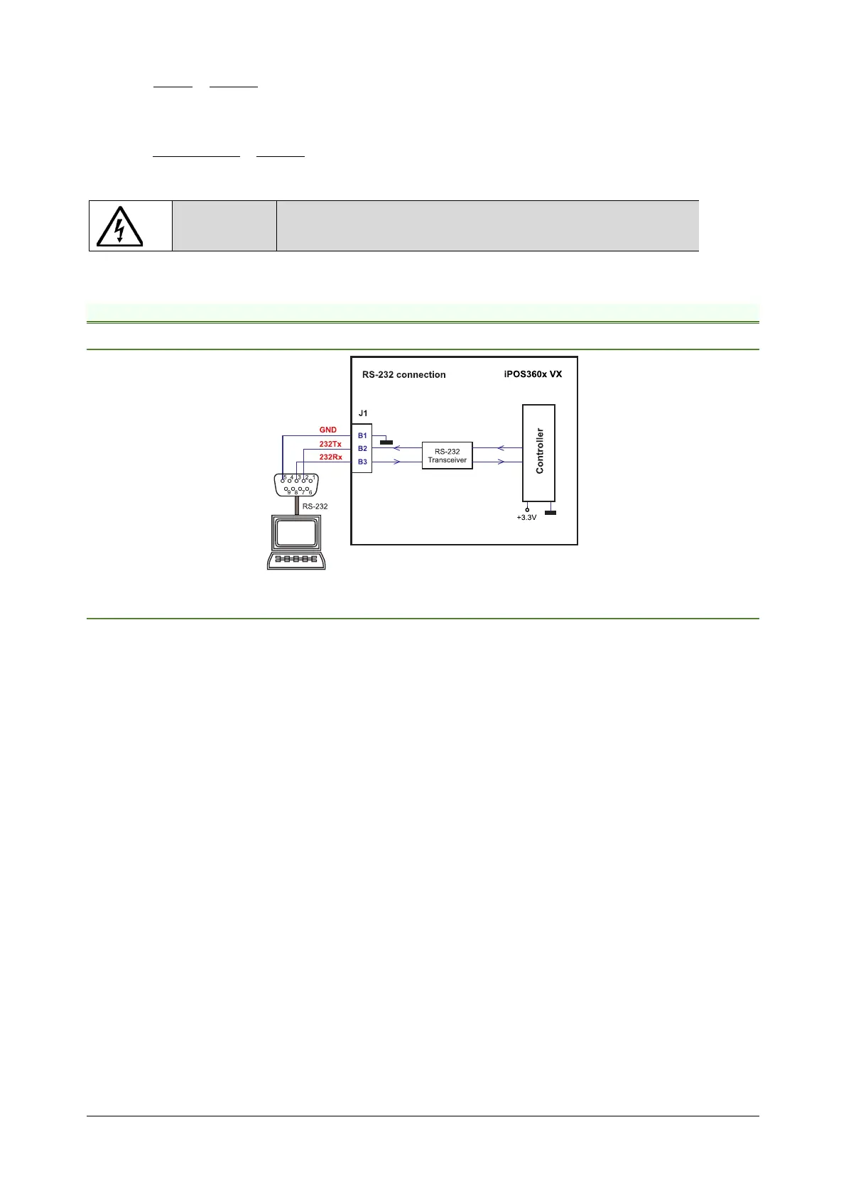 b) Always power-off all the iPOS360X supplies before inserting/removing the RS-232 serial connector