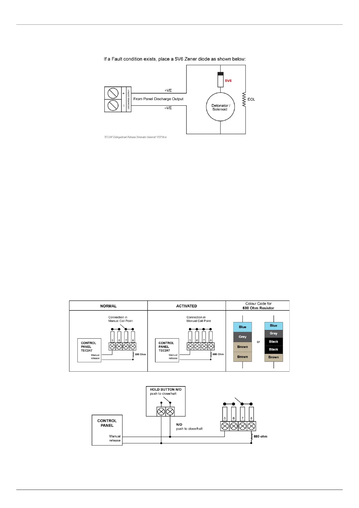 The Manual Extinguishant Release Call Point must be wired as follows: