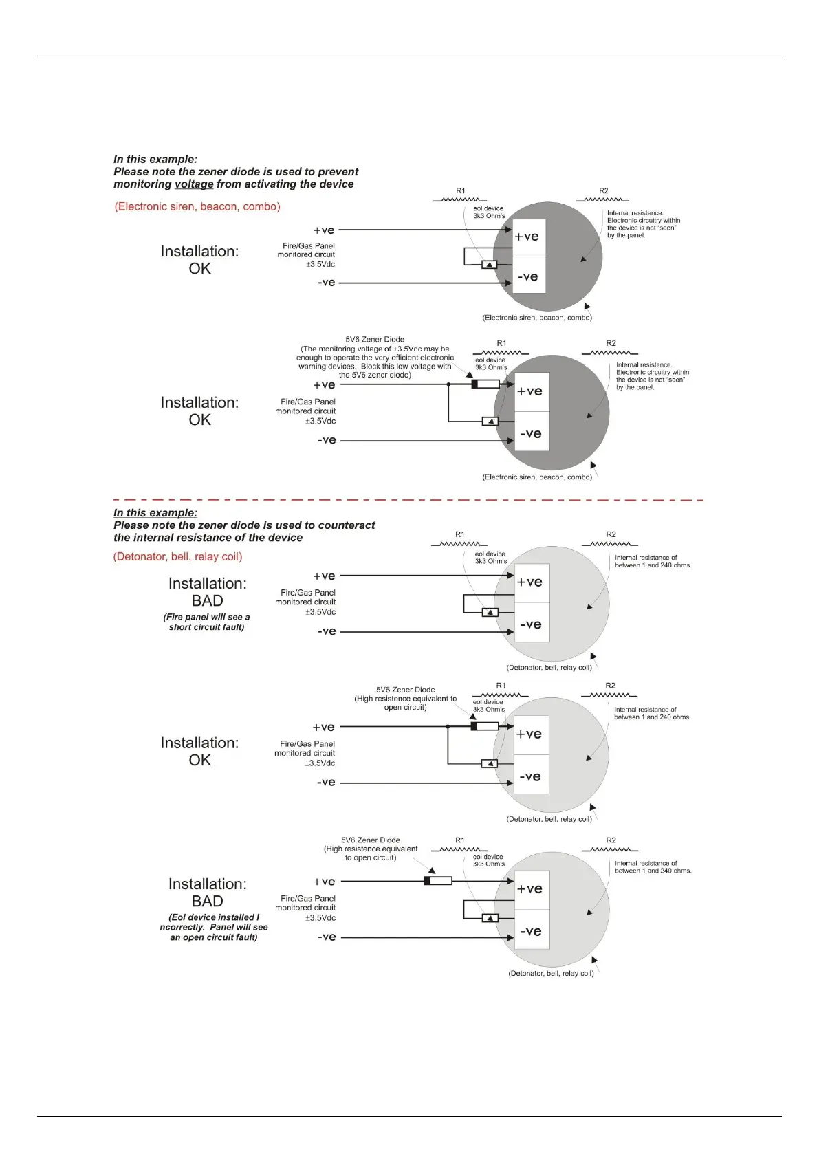 will require End-of-Line (EOL) devices and Zener diodes as shown below: