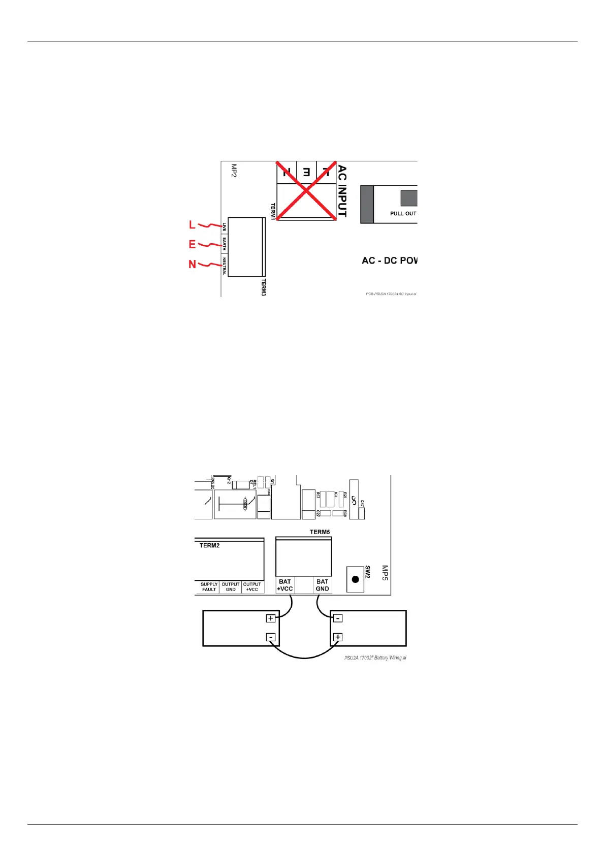 NB: If no AC input voltage is present and the battery voltage falls below 20 V DC, the PSU will automatically