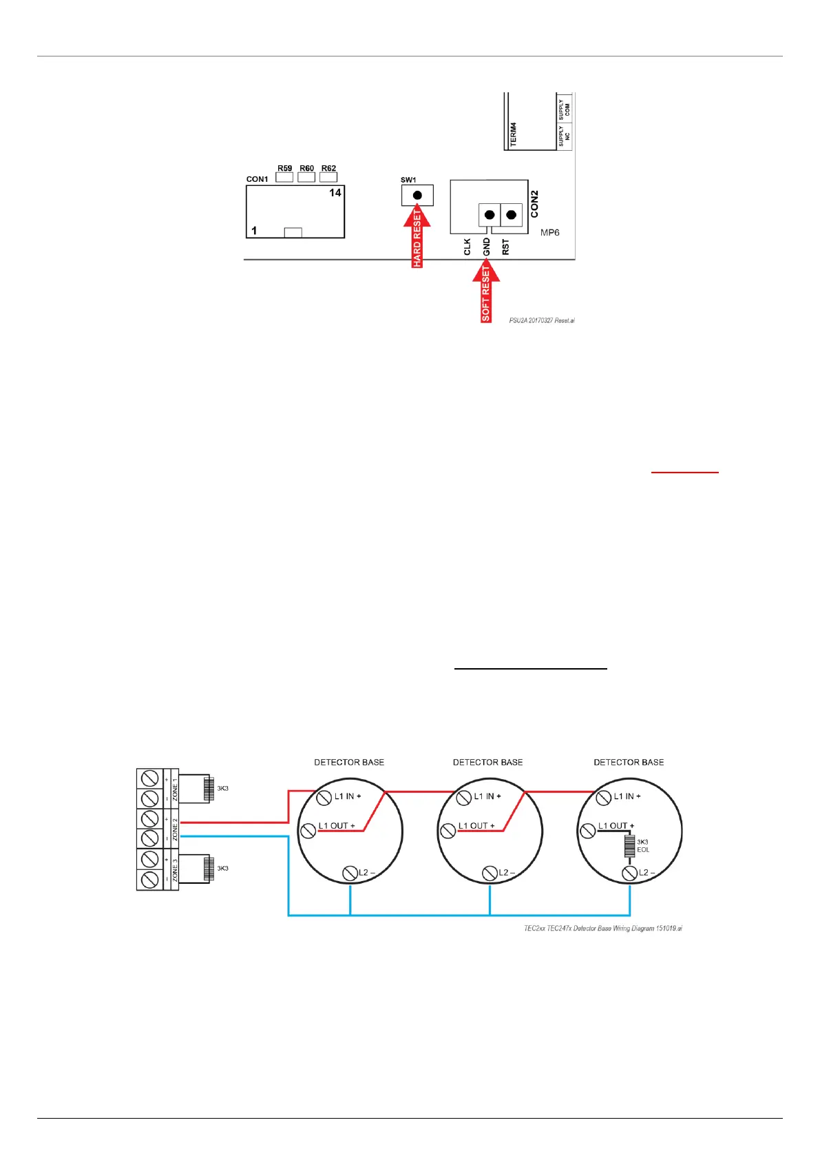 Detector base wiring may differ from those of Apollo S65 shown above. Please consult your detector wiring diagram for