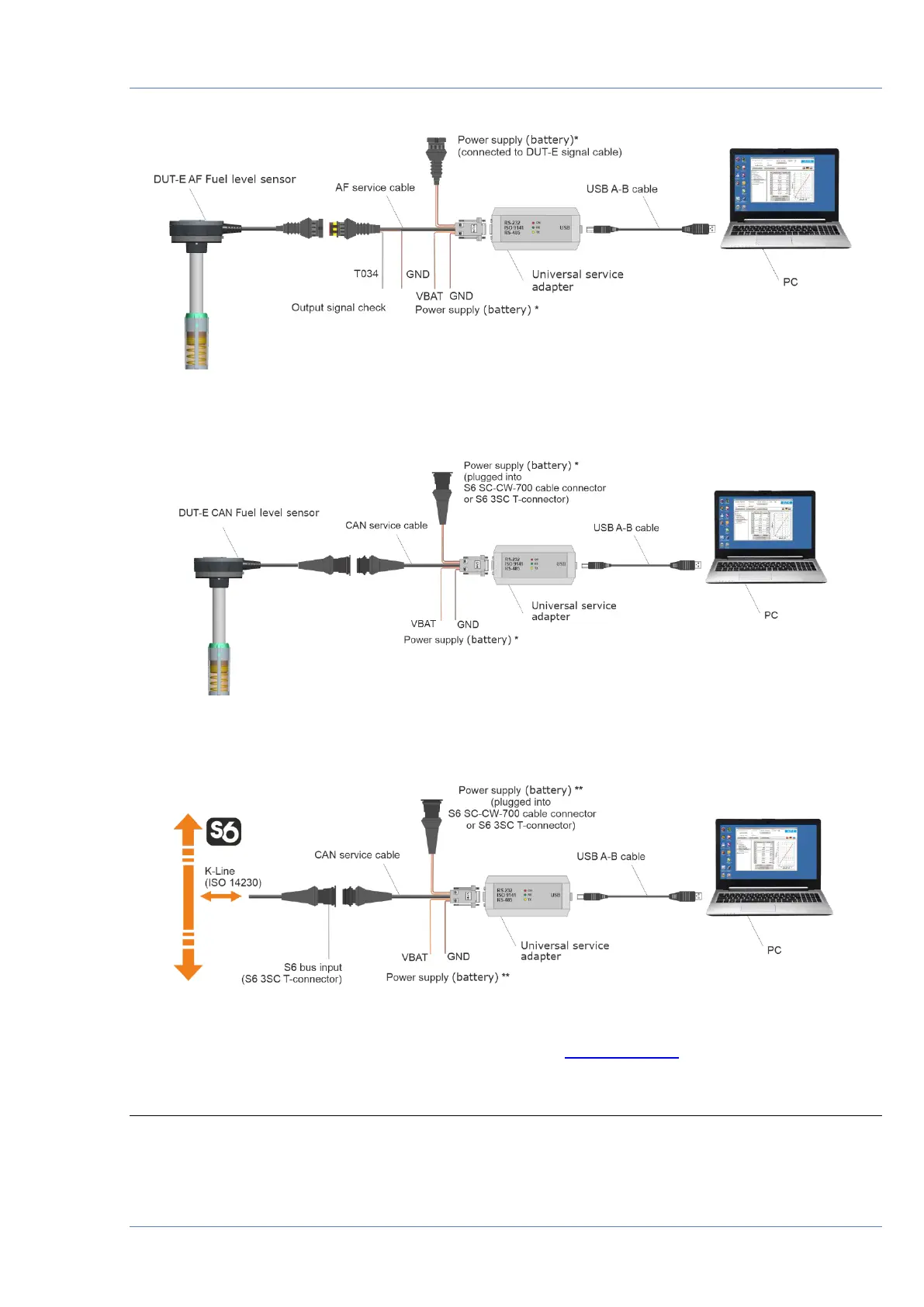 Configuration of sensor using service adapter / Service adapter connection / Connecting DUT-E to PC