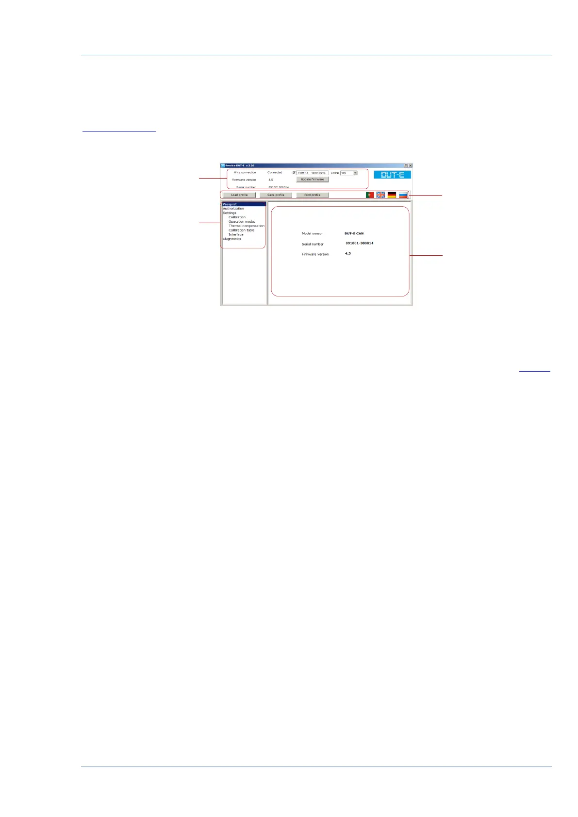 sensor (Connected/Disconnected), firmware version and serial number of the connected DUT-E