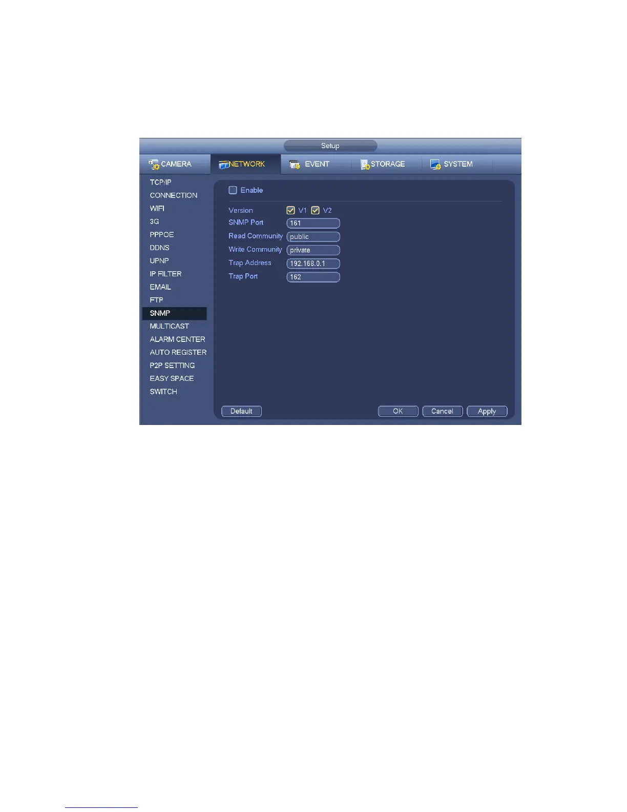 In Figure 4-114, check the box to enable the SNMP function. Input the IP address of the PC than is