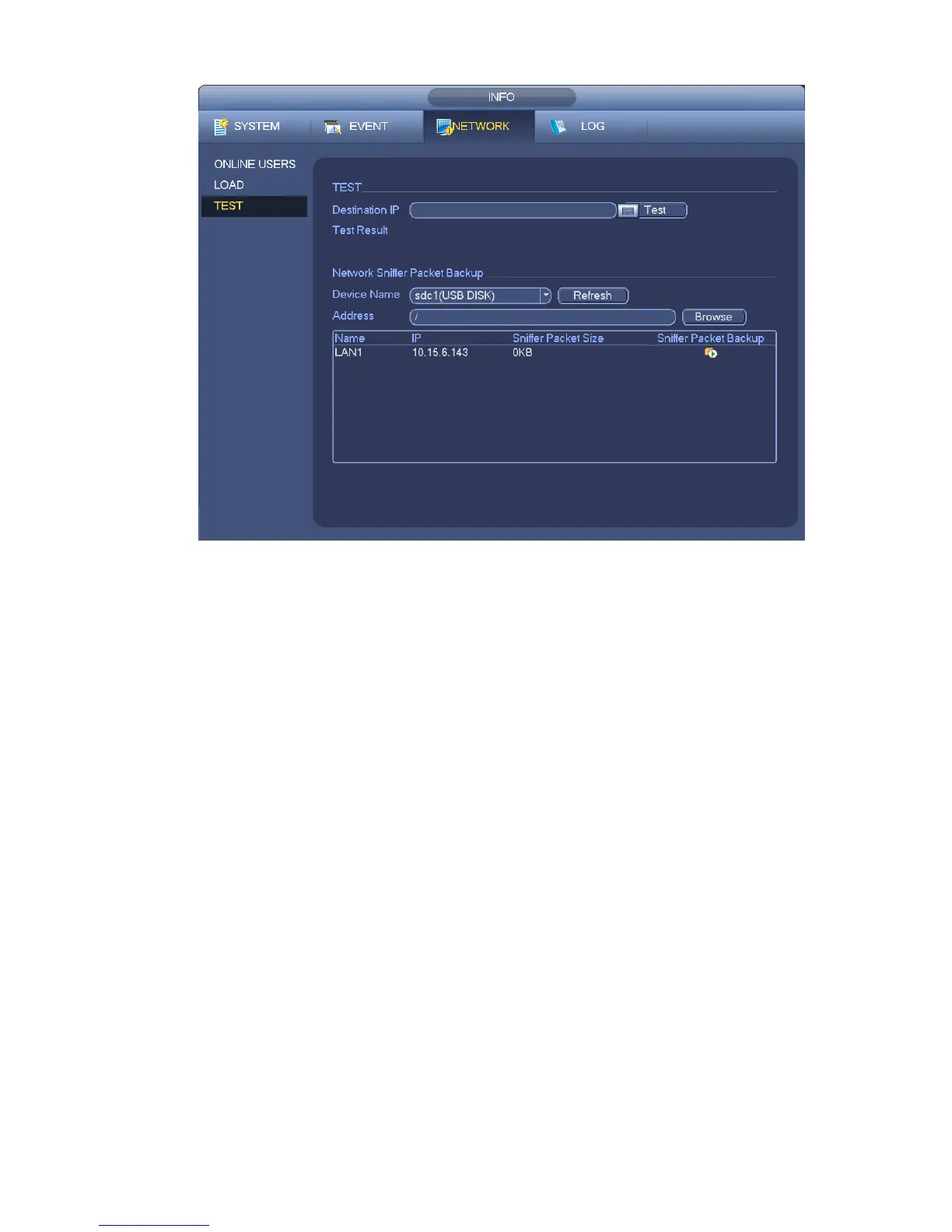 From main menu->Info-Network->Load, network load is shown as in Figure 4-122. Here you can view the