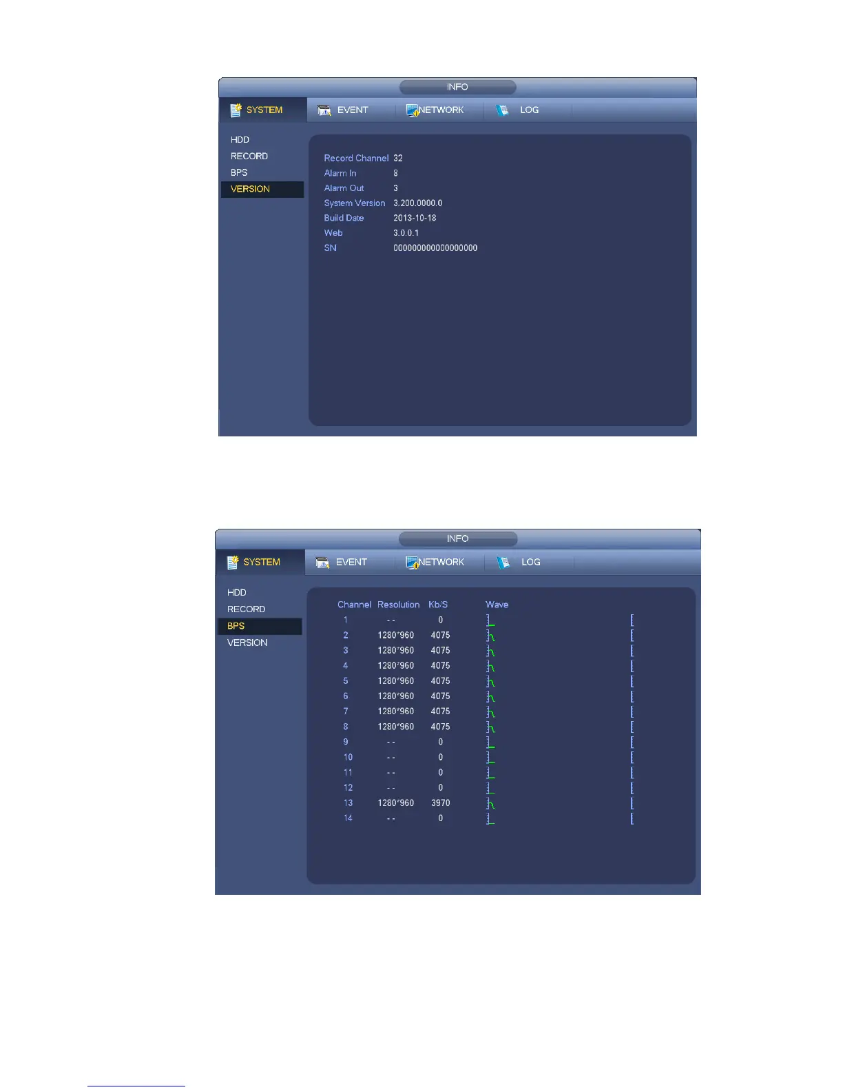 Here is for you to view current video bit rate (kb/s) and resolution. See Figure 4-141.