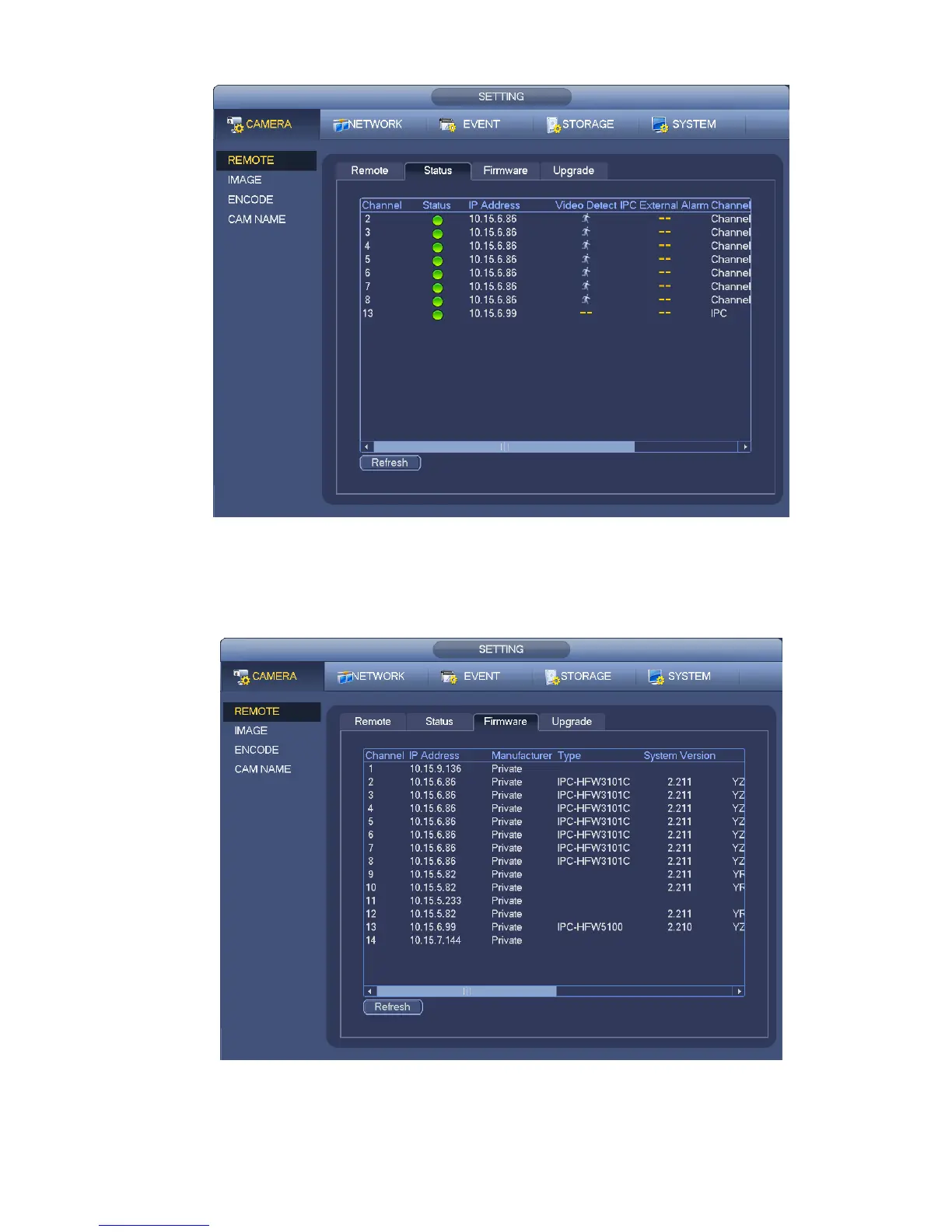 It is to view channel, IP address, manufacturer, type, system version, SN, video input, audio input,
