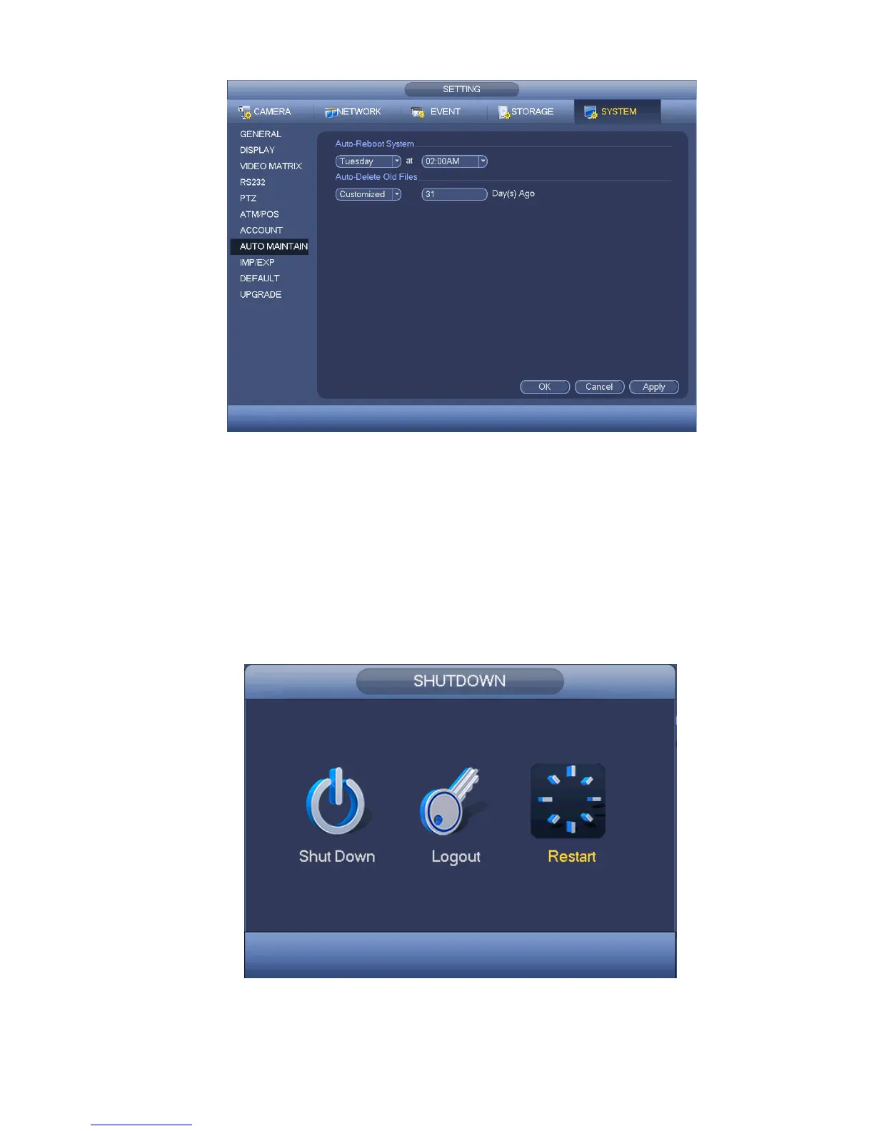 From Mani menu->Operation->Shutdown, you can see an interface shown as in Figure 4-159.