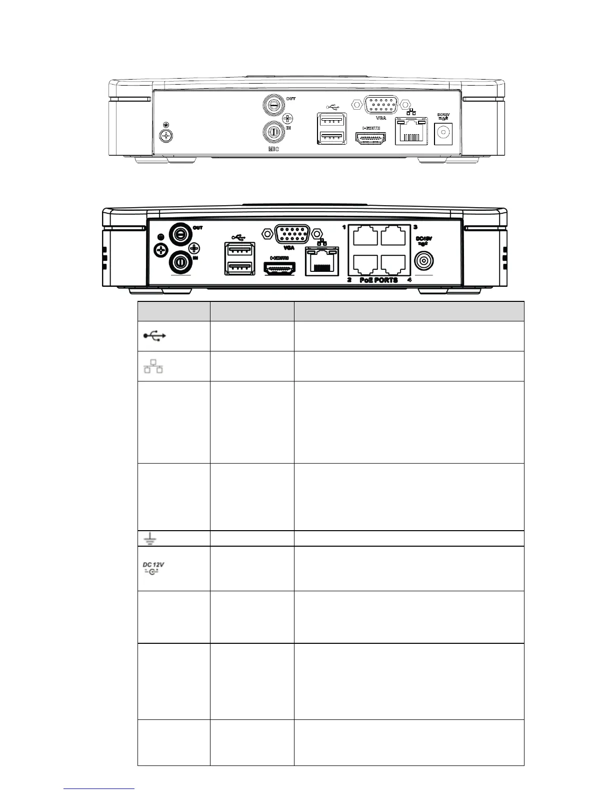 MIC IN Audio input port Bidirectional talk input port. It is to receive the
