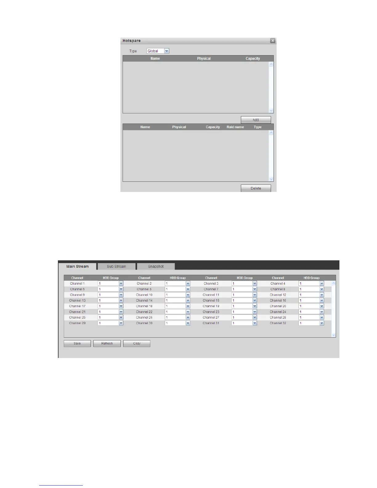 The main stream interface is shown as in Figure 5-82. Here you can set corresponding HDD group to