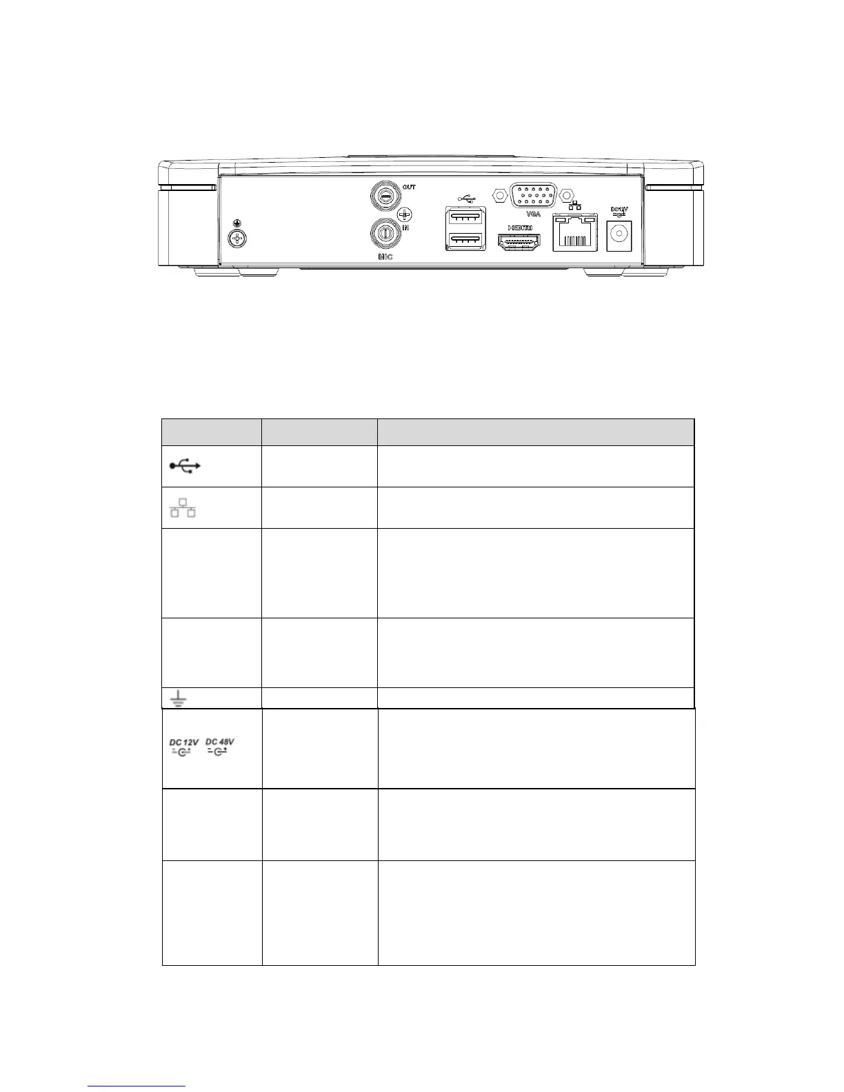 MIC IN Audio input port Bidirectional talk input port. It is to receive the