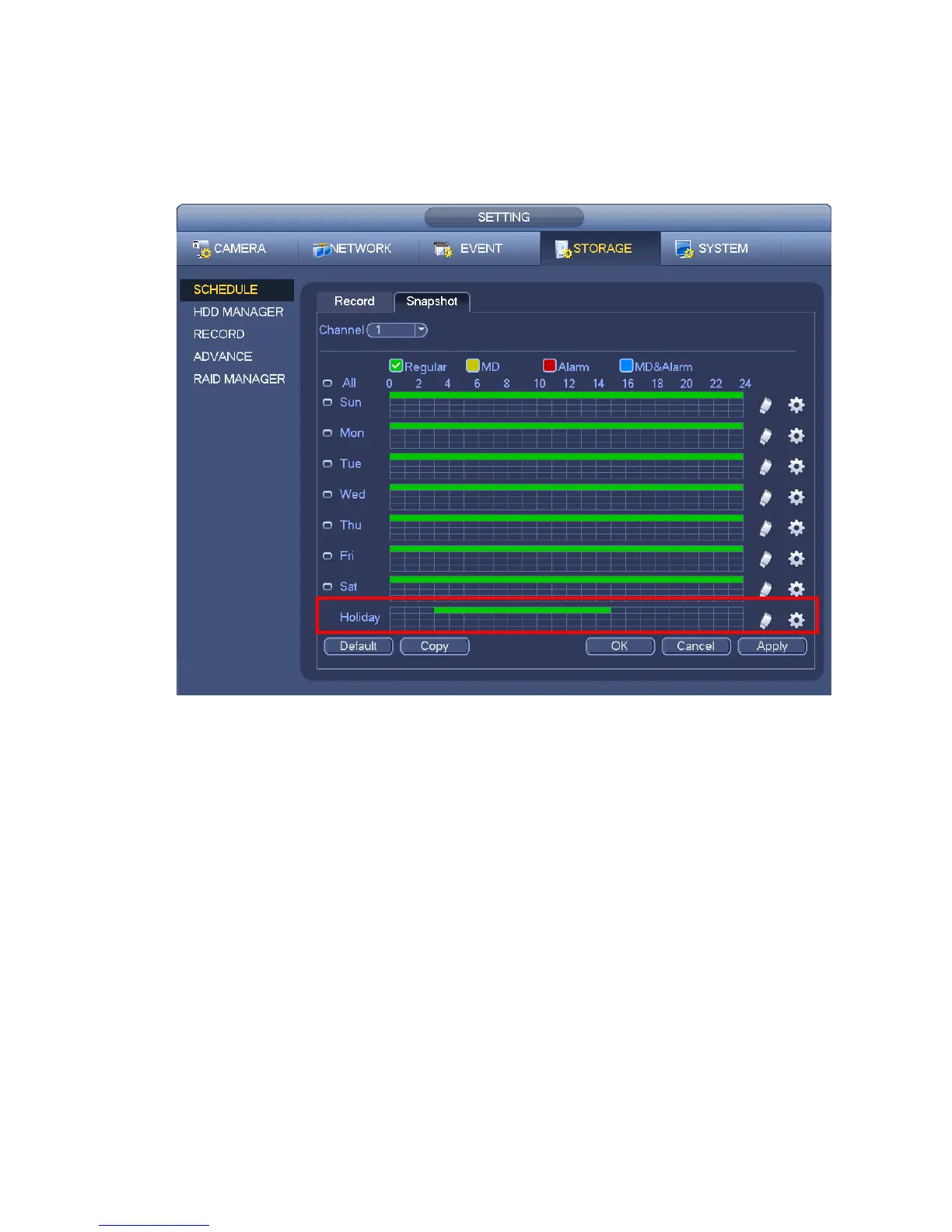 Set holiday snapshot type (Trigger/Regular). Please refer to chapter 4.8.2.2 or chapter 4.8.3.2.