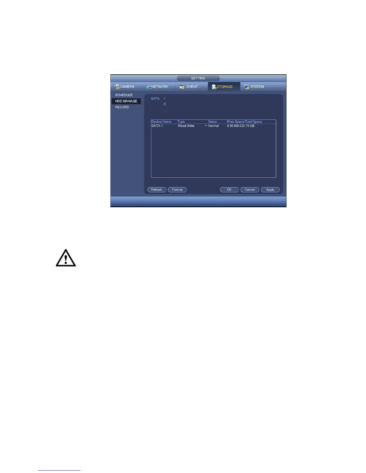 You can see current HDD type, status, capacity and etc. The operation includes format HDD, and