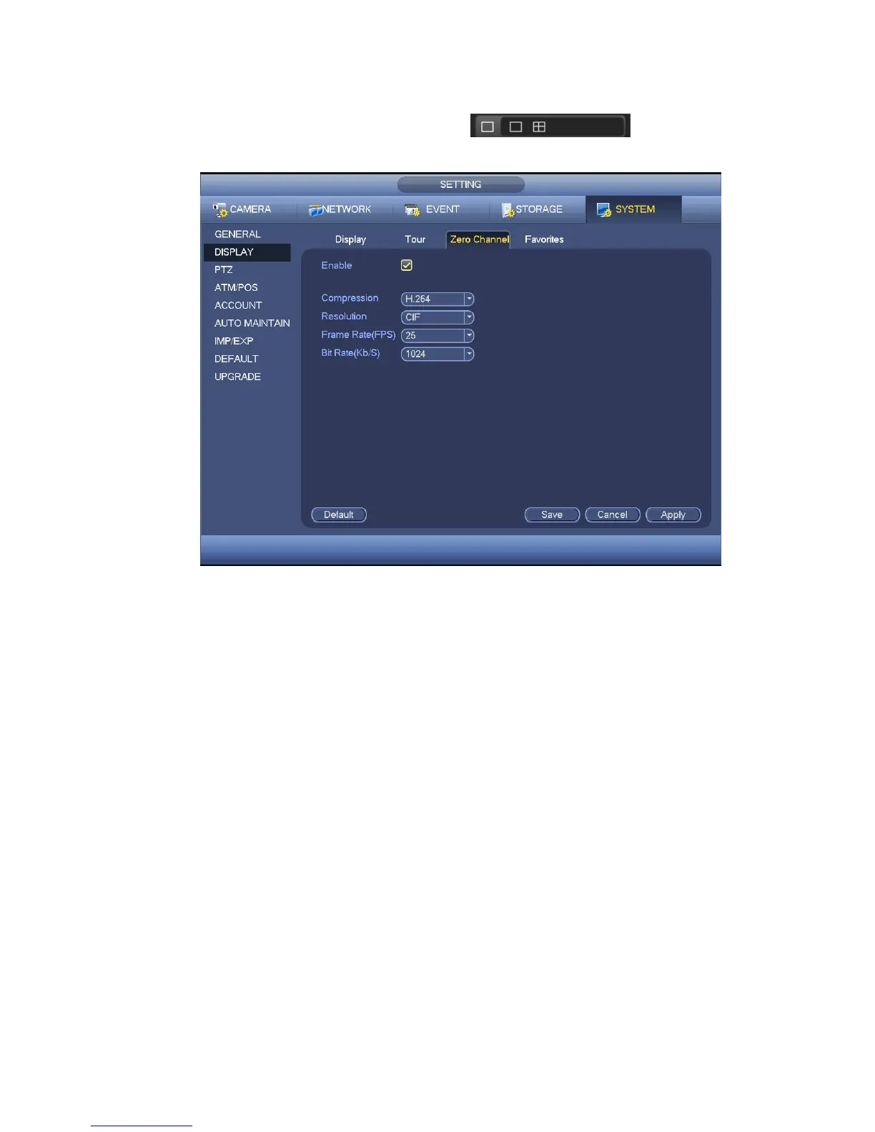 function is disabled. After you enabled this function, login the Web and you can select zero-channel