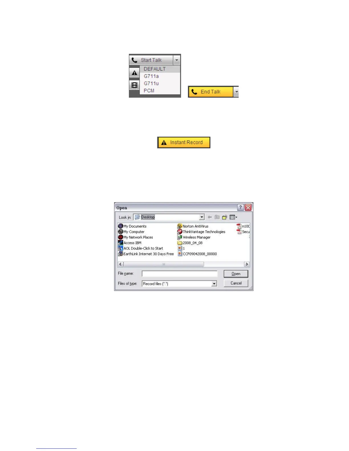 Section 4: Instant record button. Click it, the button becomes yellow and system begins manual