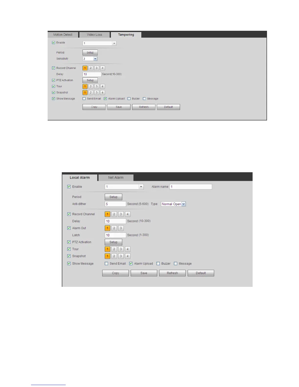 The local alarm interface is shown as in Figure 5-57. It refers to alarm from the local device.