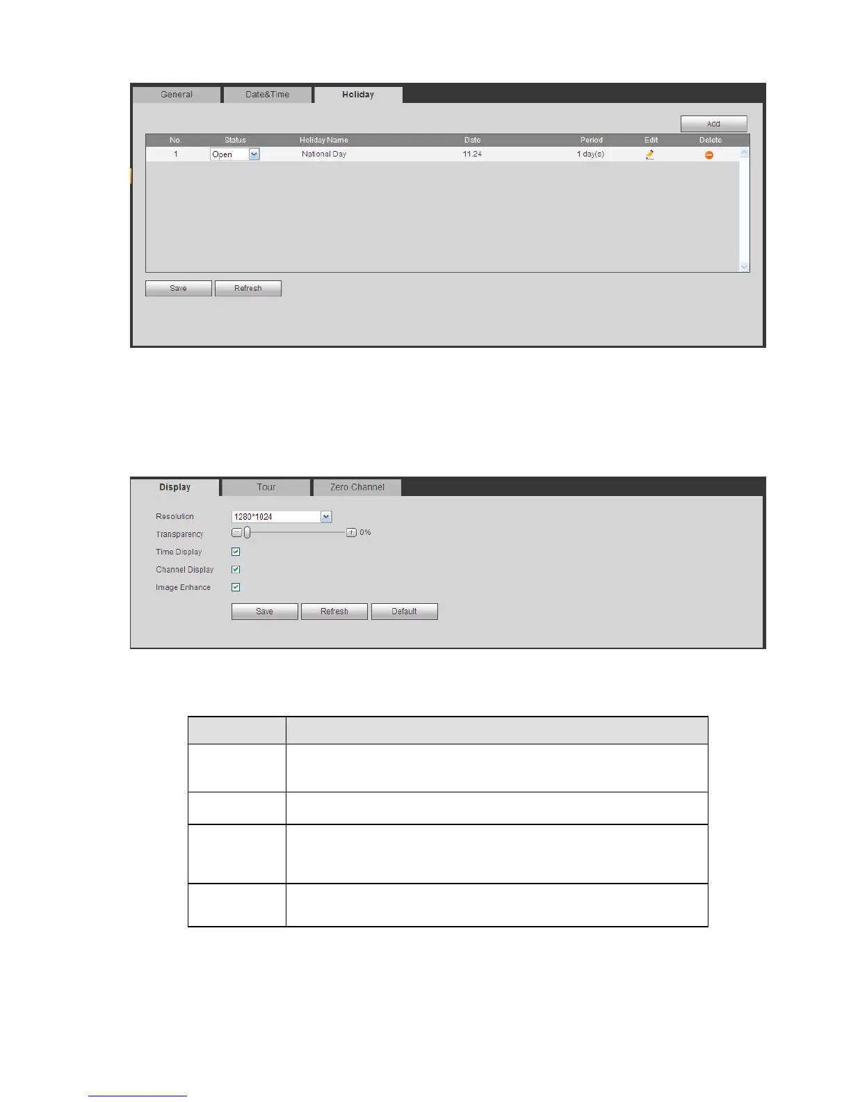 Display interface includes GUI, TV adjust, Tour and zero-channel encoding.
