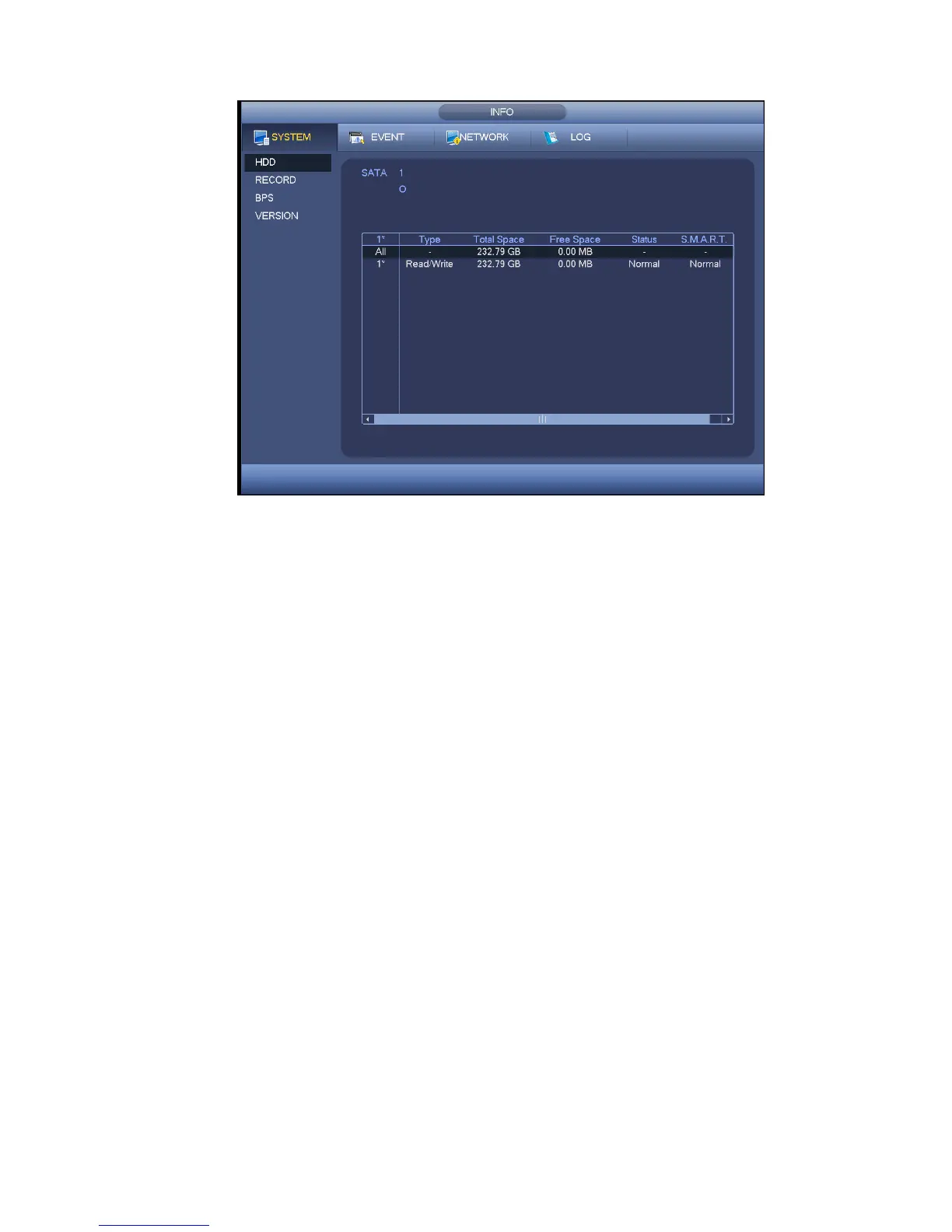 SATA: 1 here means system max supports 1 HDD. ○ means current HDD is normal. X means there