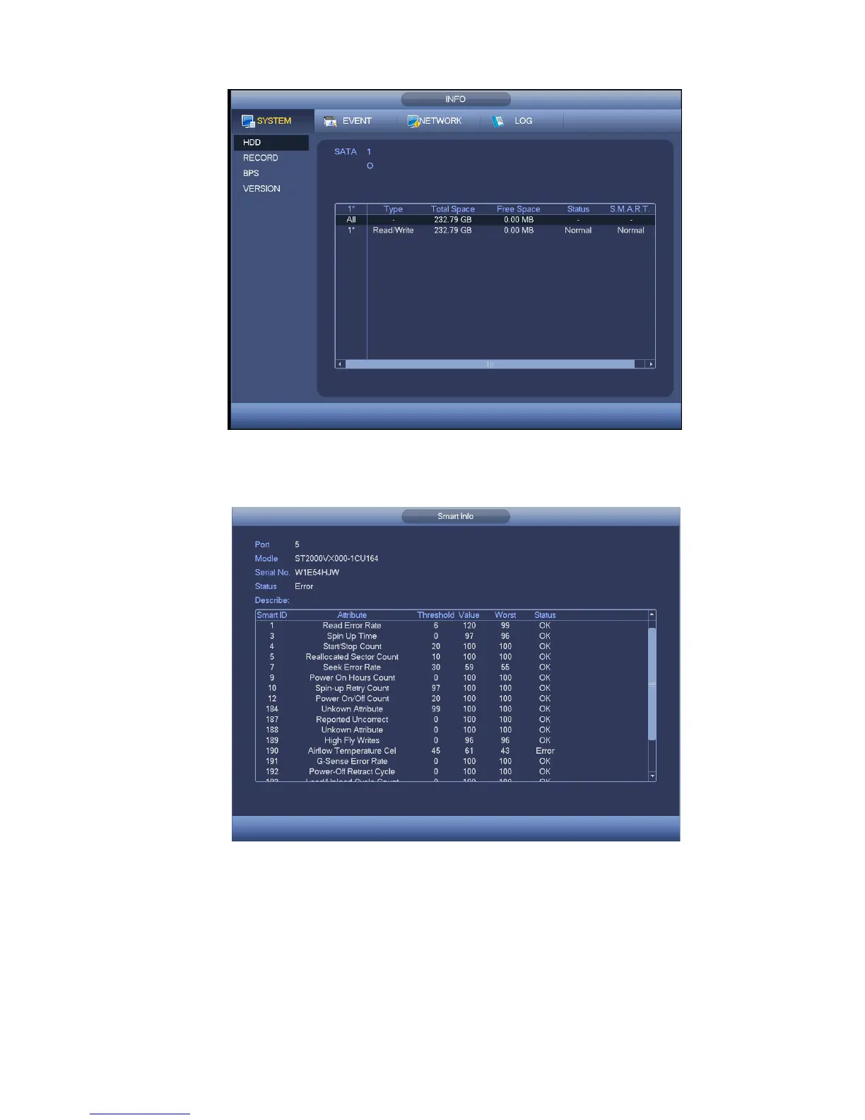 Double click one HDD information; you can see the HDD SMART information. See Figure 4-39.