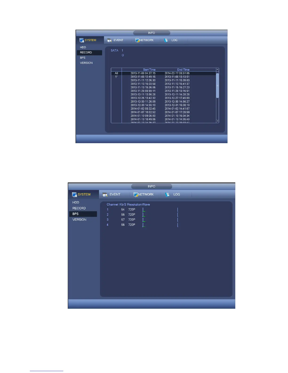 Here is for you to view current video data stream (KB/s), resolution and etc. See Figure 4-41.