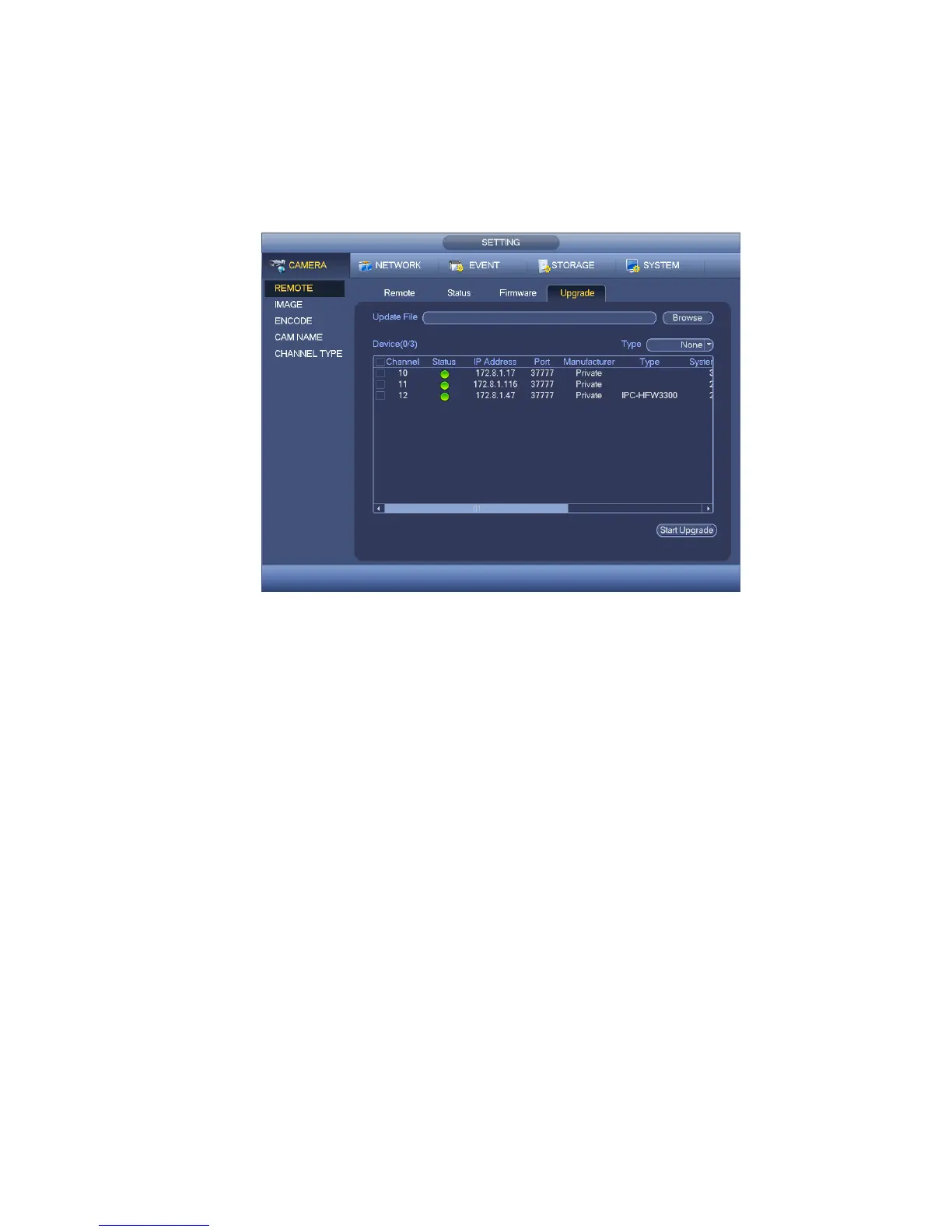 From main menu->setting->camera->remote, the interface is shown as below. See Figure 4-53.
