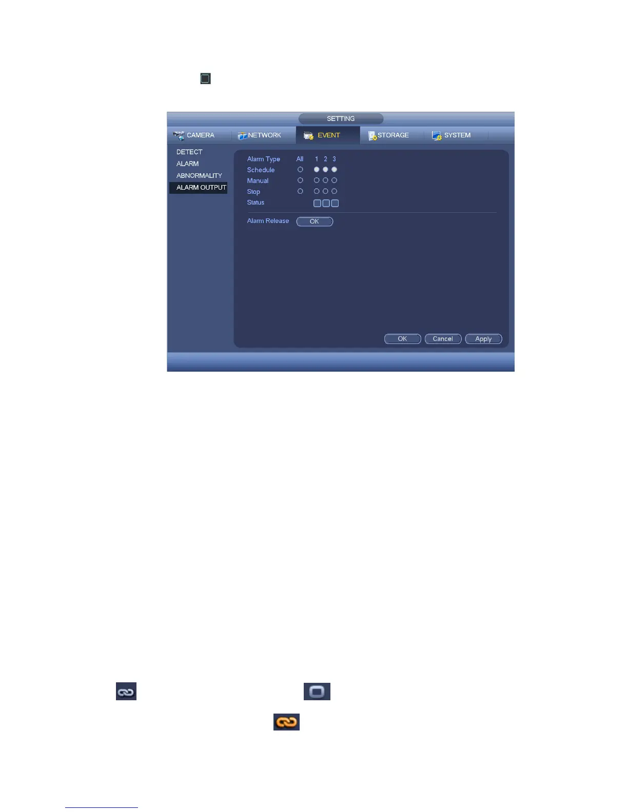 Please highlight icon to select the corresponding alarm output.