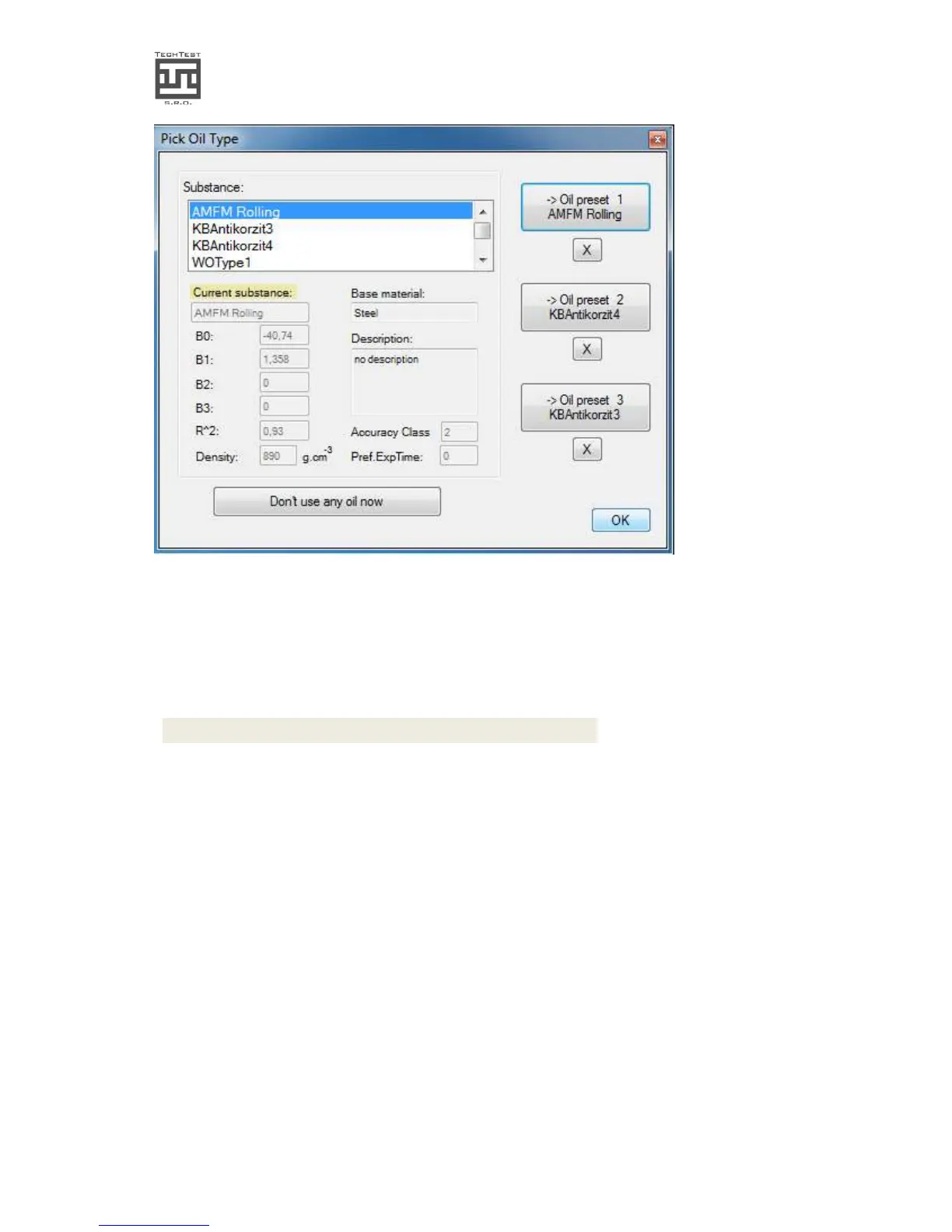 Please select the appropriate oil from the database. If you do not wish to use the kT