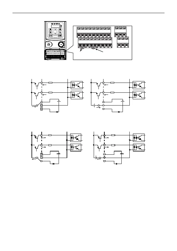If the signal is from NPN transistor, please set the U-shaped contact tag between +24V and PW as