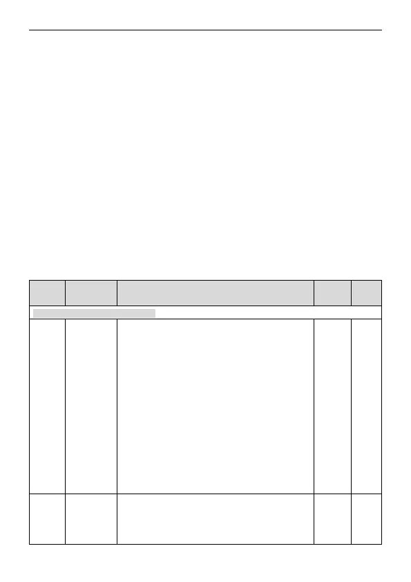 The first column "Function code": codes of function parameter group and parameters;