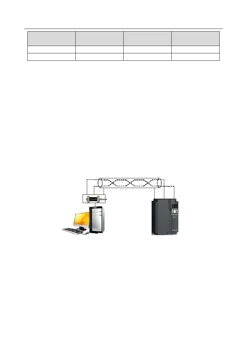 Fig 9.1 is the Modbus wiring diagram of one VFD and a PC. Generally, PCs do not provide RS485