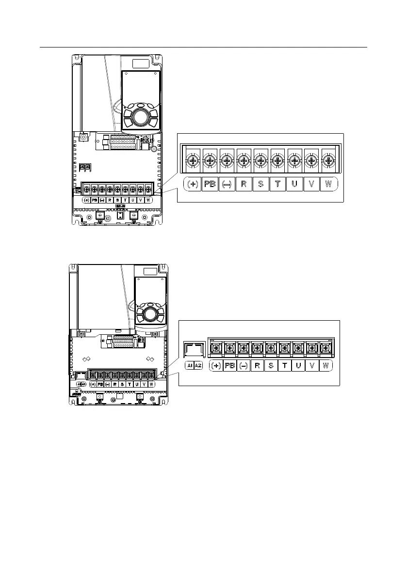Fig 4.13 Terminals of main circuit for the VFDs of 220V 45.5kW, 460V 7.511Kw, and 575V 4