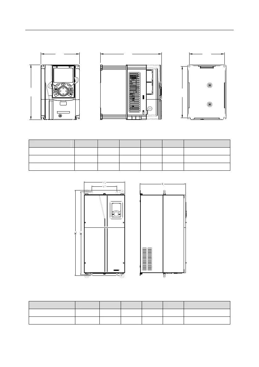 C.5 Dimensions of VFDs of AC 3PH 520V–600V