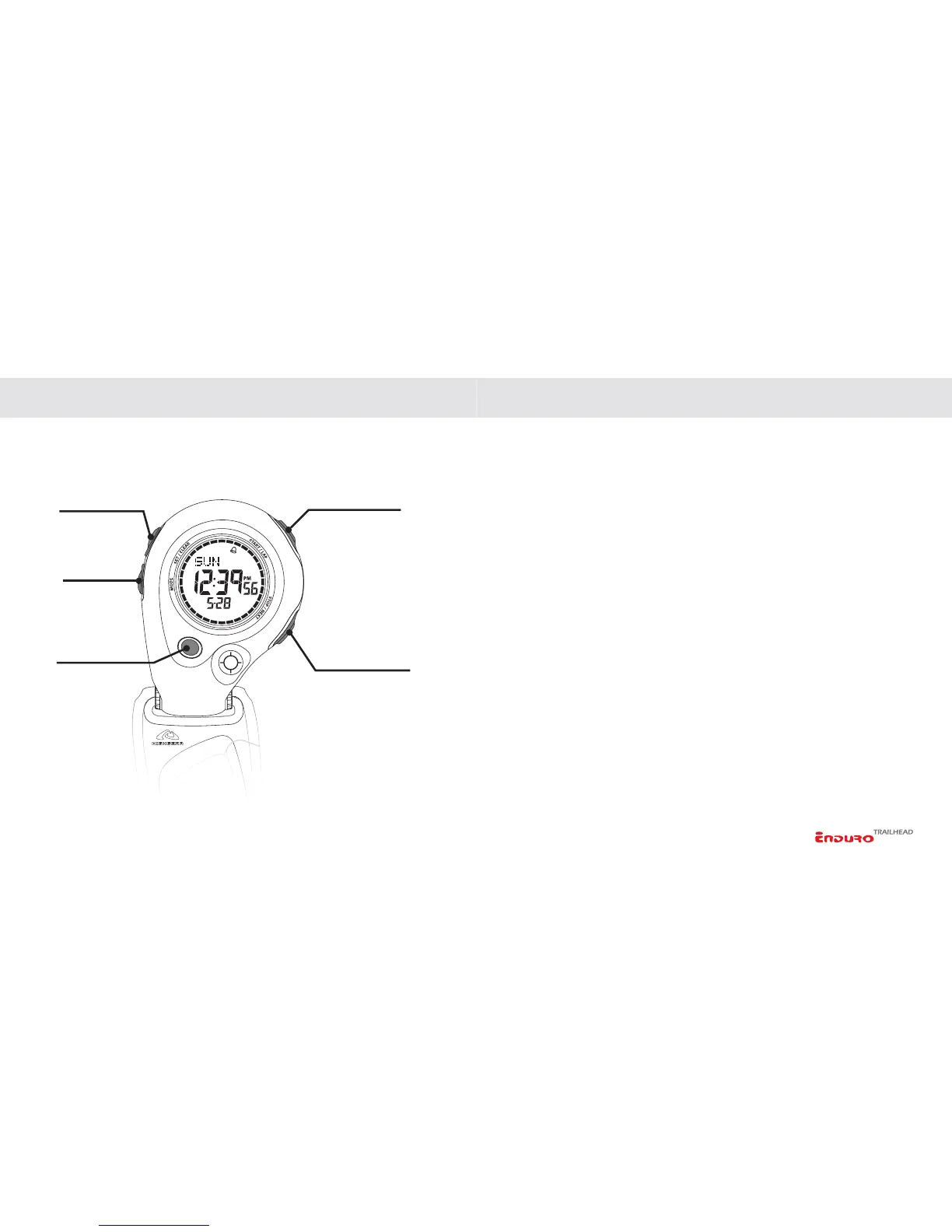 The Enduro has 5 individual keys. Each key has several functions. The drawing identifies