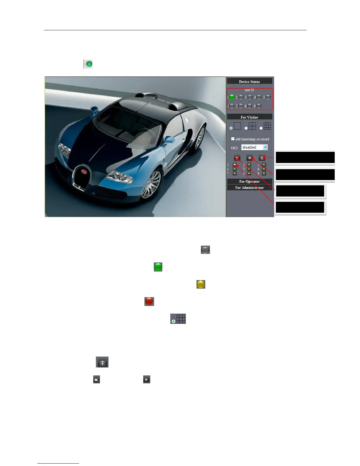 The right upper is status's indicator area which can show 9 IP camera status.