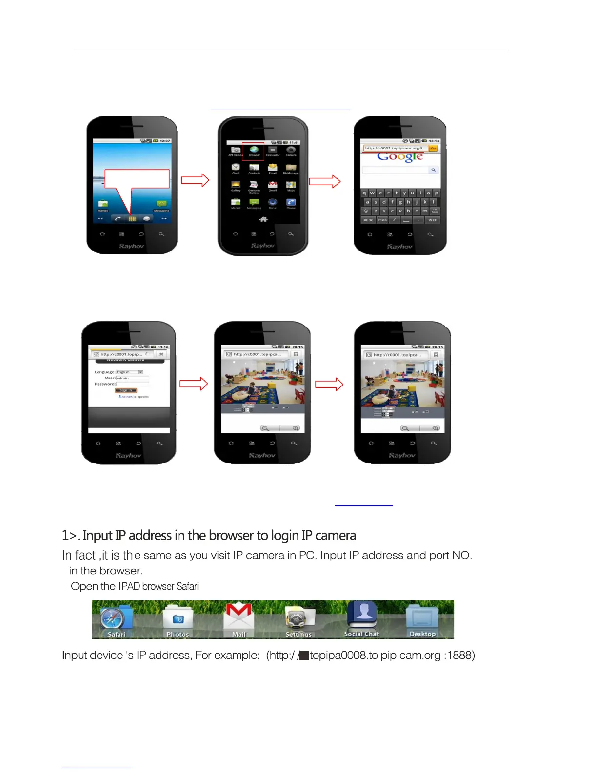 Open menu and firstly open the browser, and input IP camera 's IP address in the