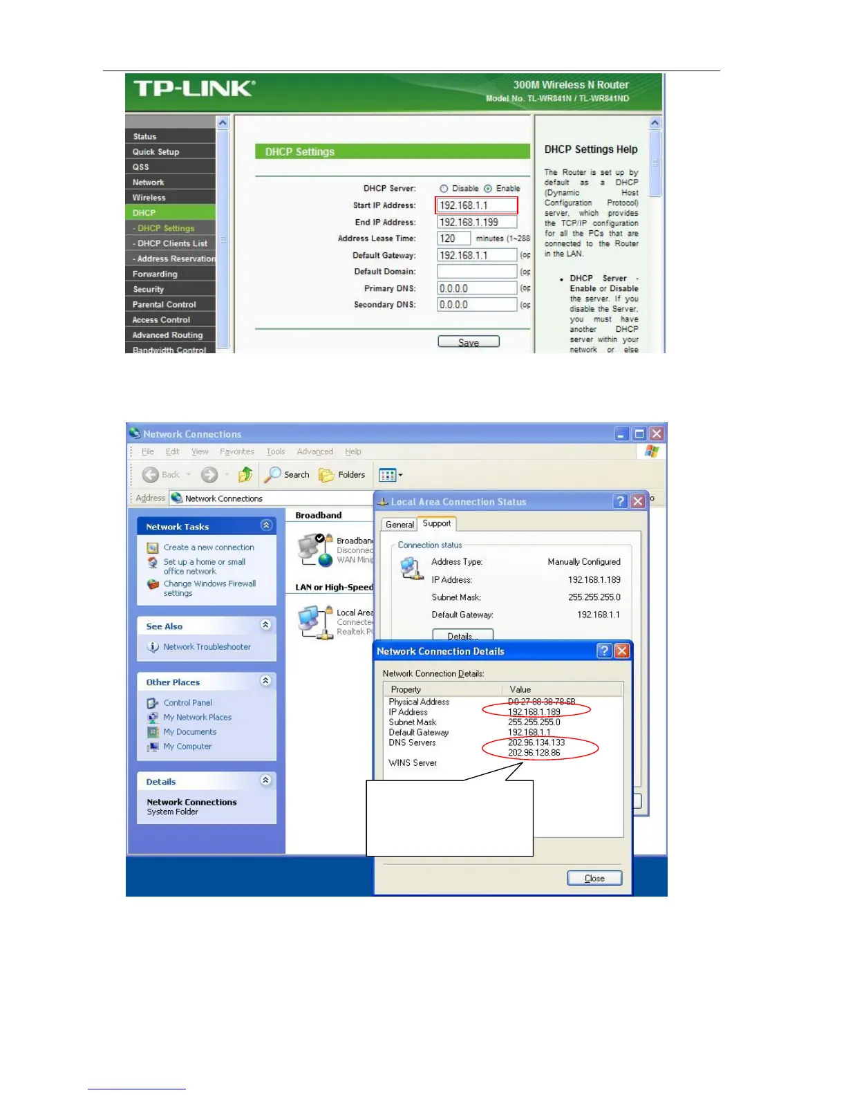 3) You can search PC IP and DNS Server as belows: