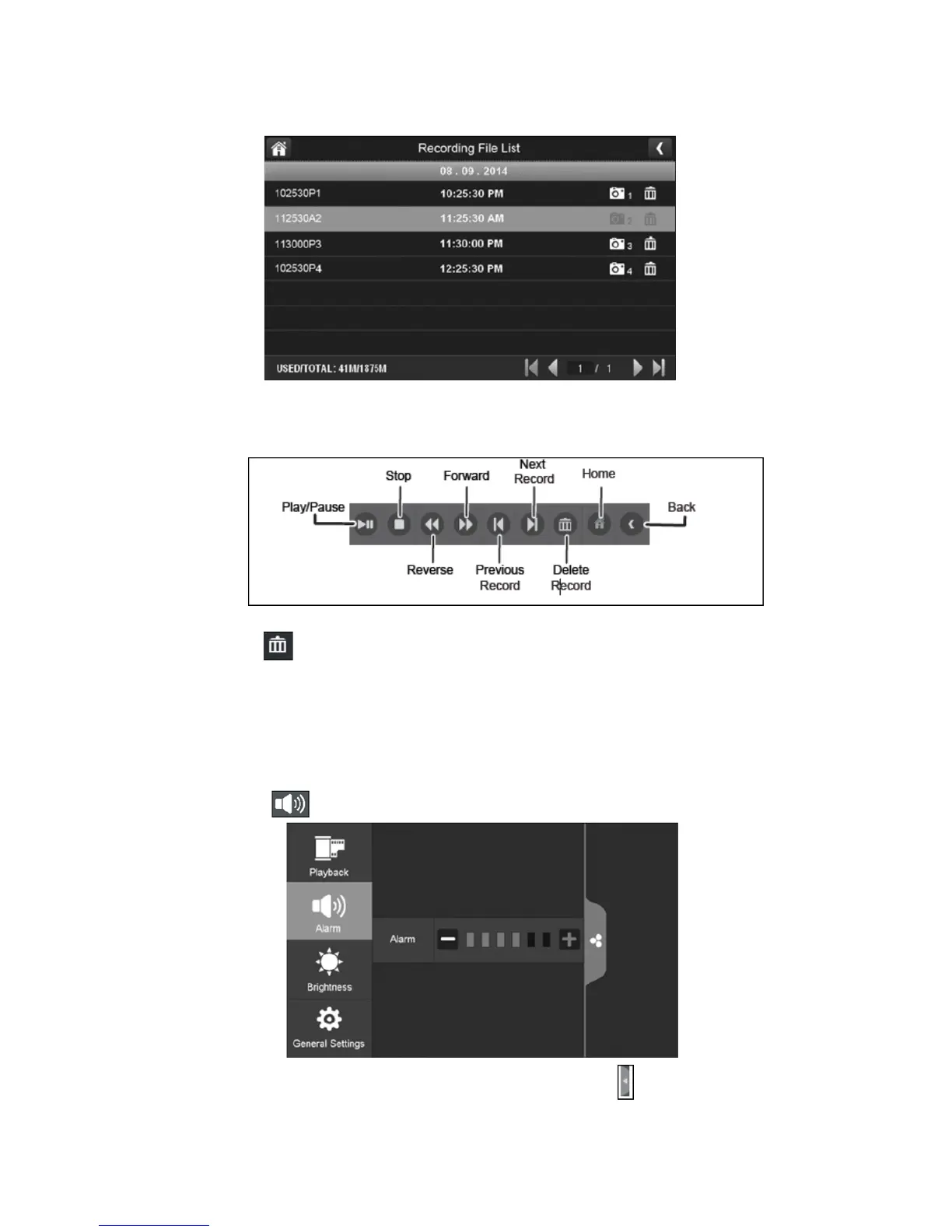 Press the recorded file you want and it will start playing, with a bar across the bottom of