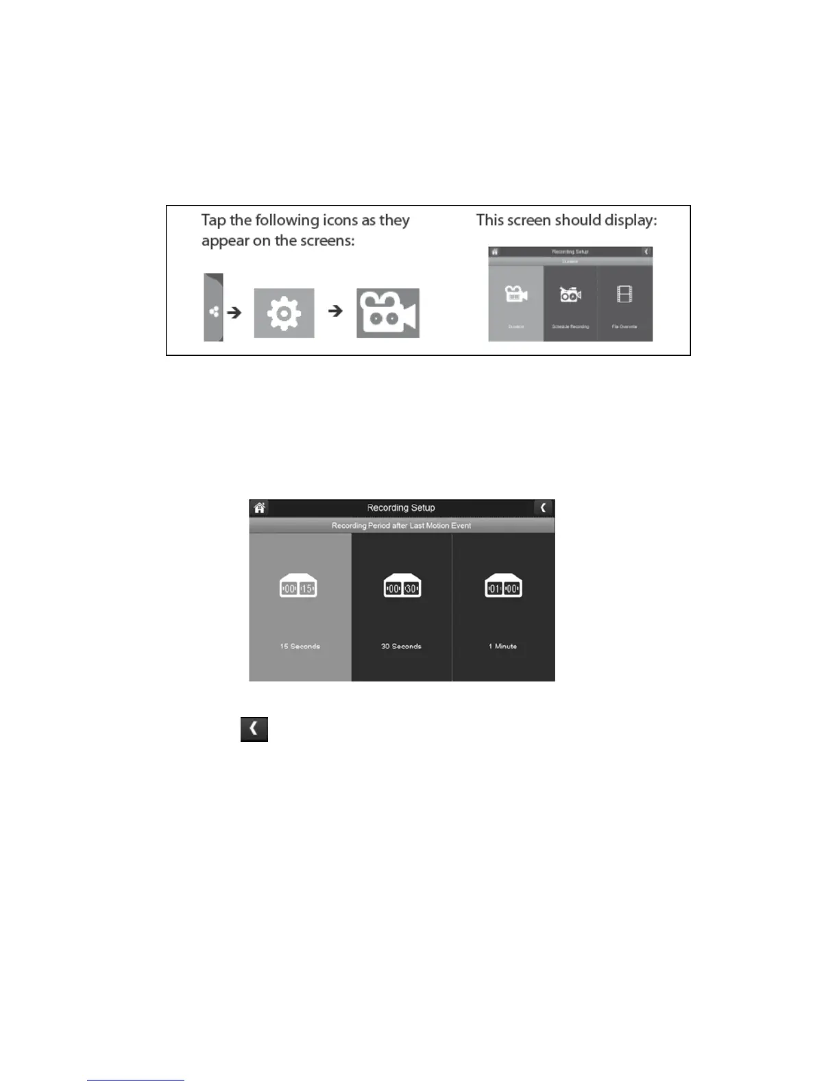 Press which duration you wish to set which is either 15, 30 seconds or 1 minute.
