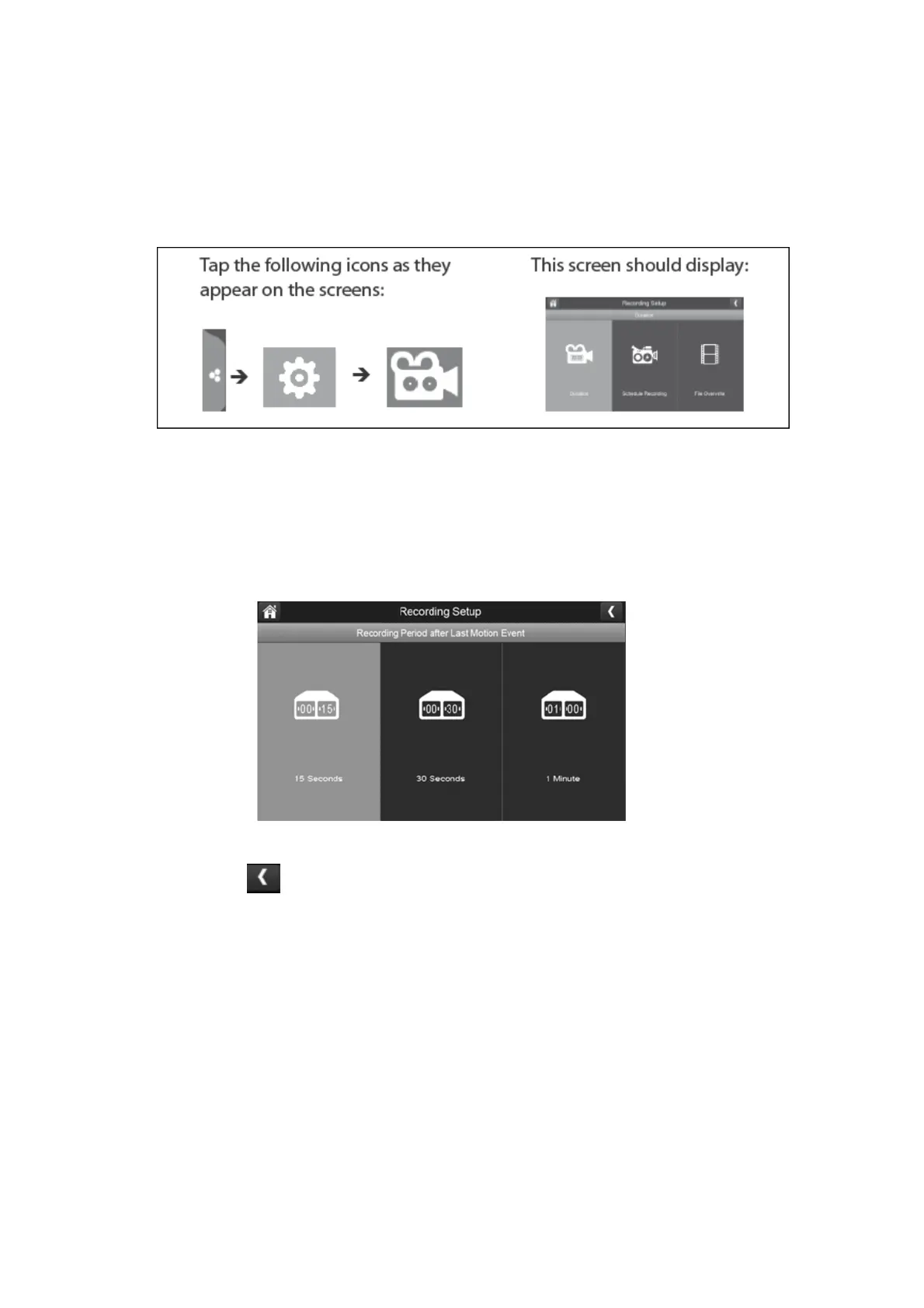 Press which duration you wish to set which is either 15, 30 seconds or 1 minute.