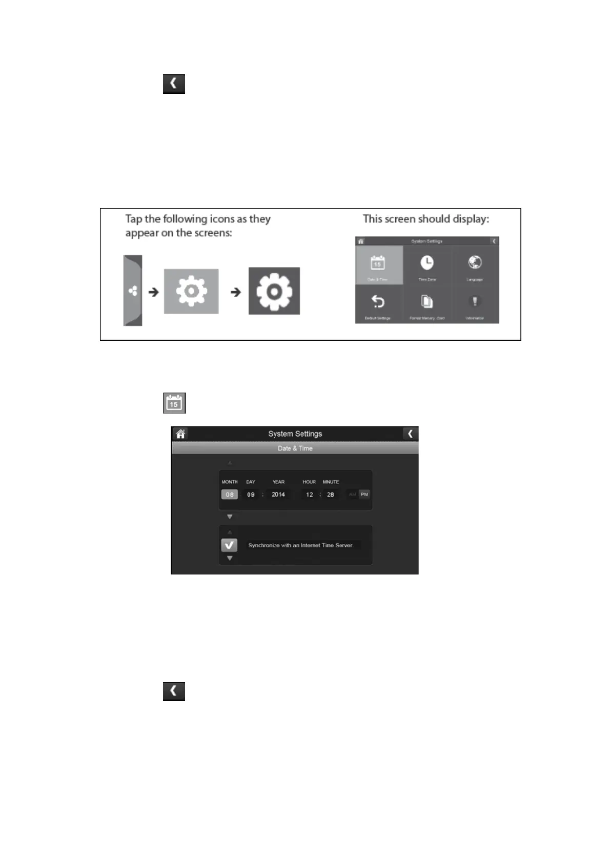 You can use these settings to change the date, time, time zone, language, reset to default,