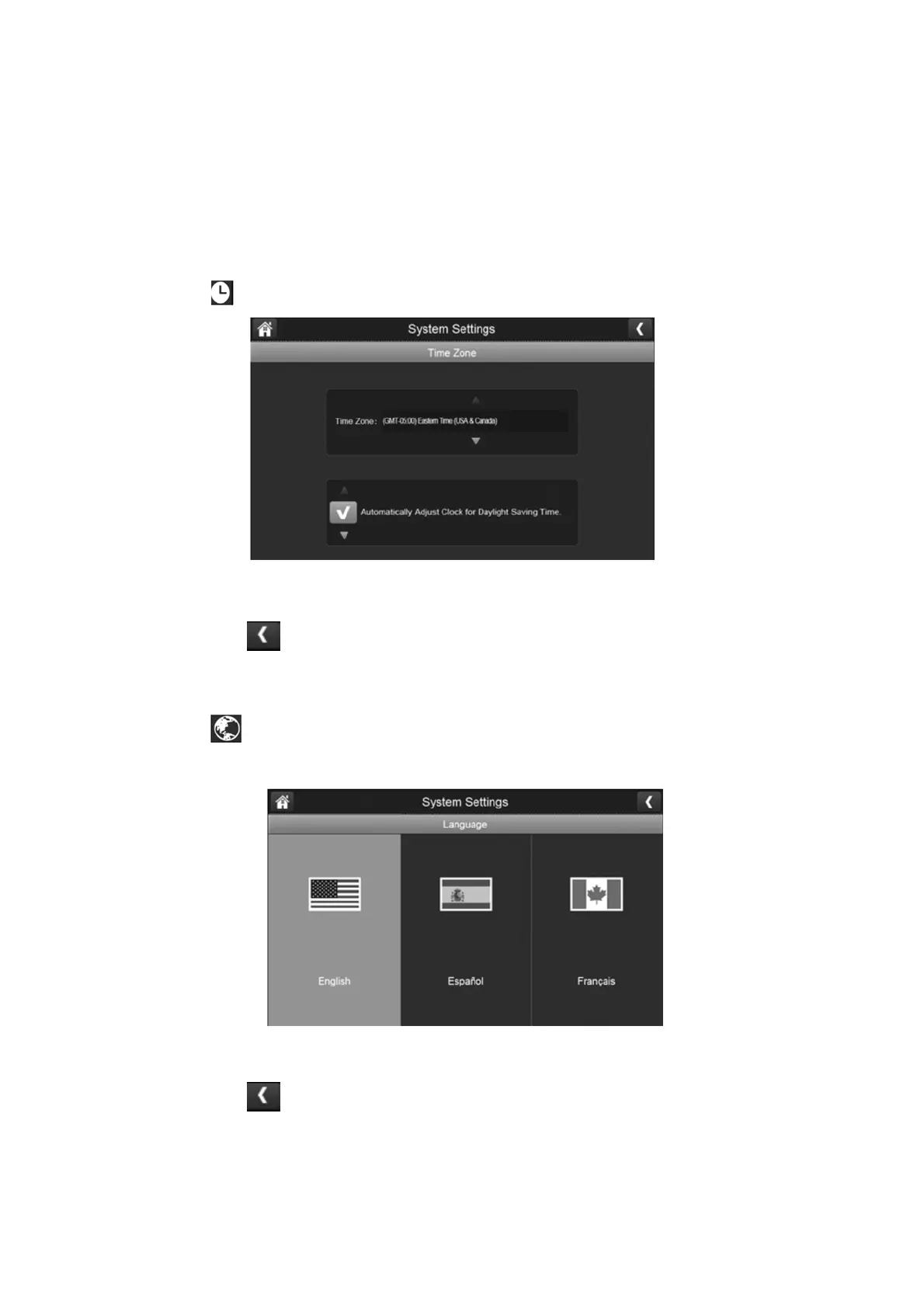 Press the time zone button to access the setting as shown below: