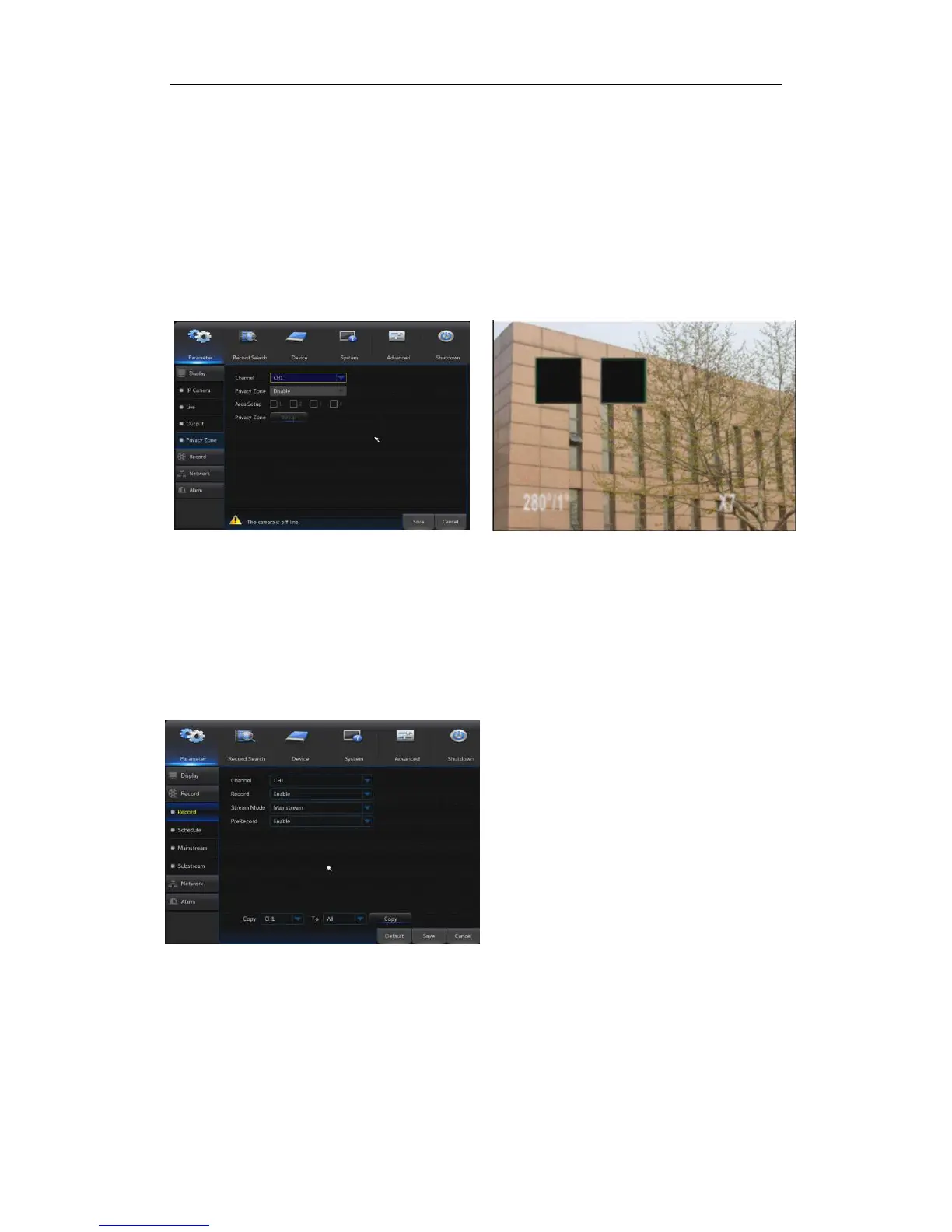 Privacy Zone is for setting some invisible parts in the selected channel, as shown in
