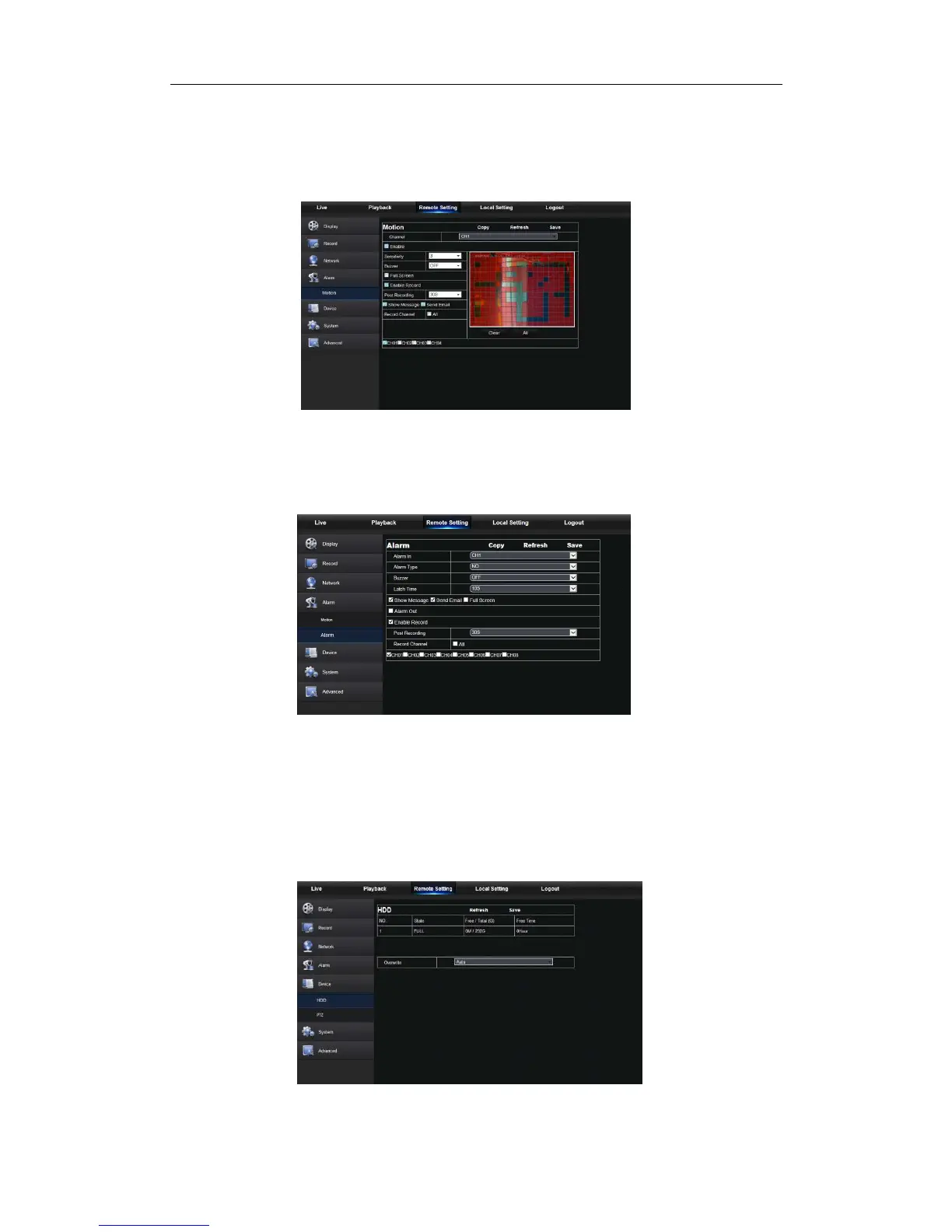 1. Motion Detection: Configure Sensitivity, Alarm out, Alarm Record and Alarm Capture,