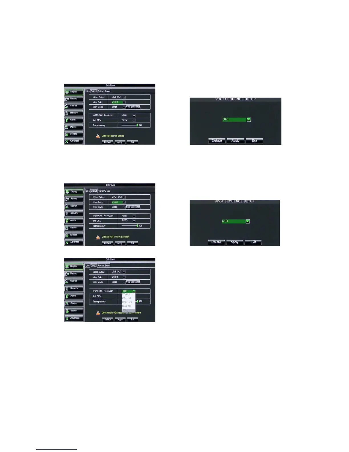 Spot output: display window will include Single, Quad and 9-split mode.