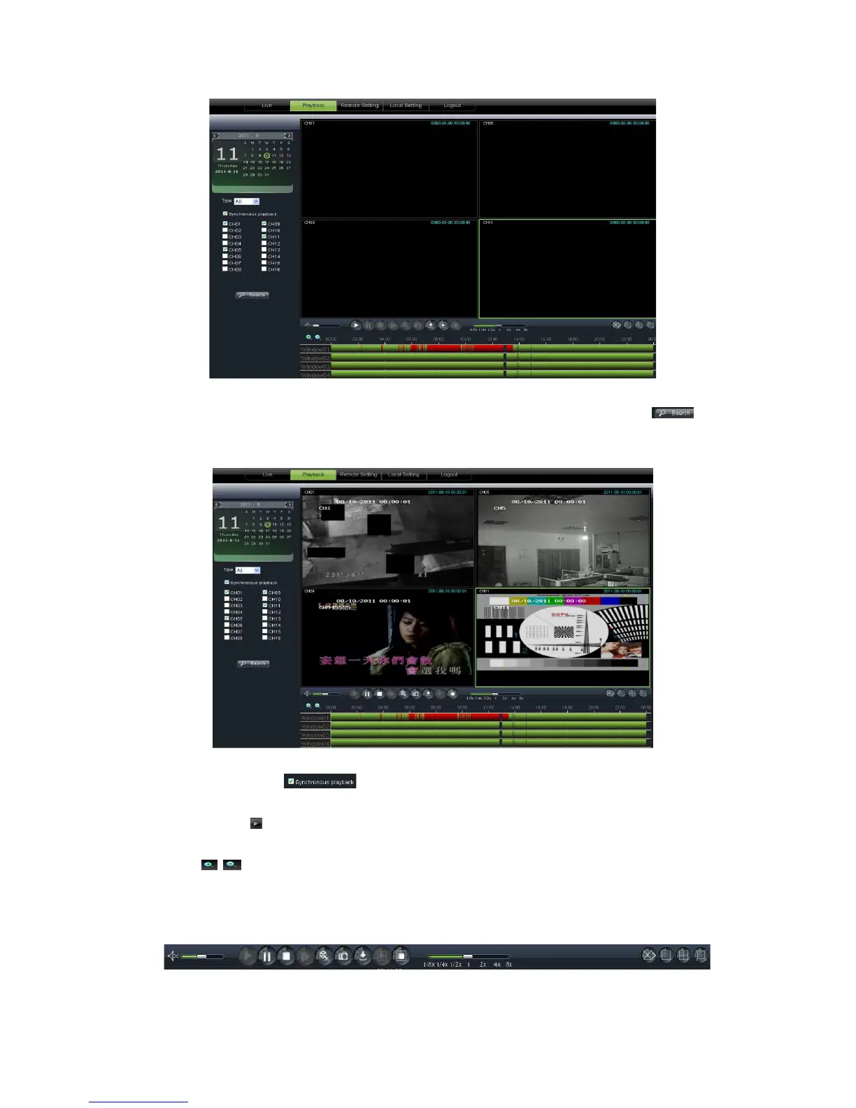 9. On the time axis, red part stand for alarm record, yellow stand for