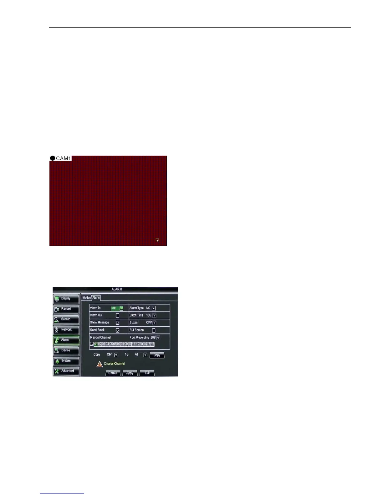 Full screen Alarm: The function is defaulted to “On". When the motion detection or external alarm is