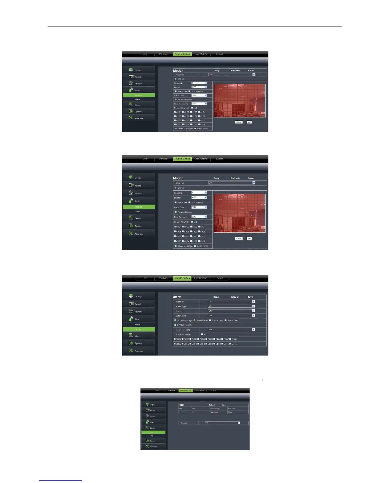 configure its <Sensitivity>, <Alarm out>, <Alarm record> and <Alarm